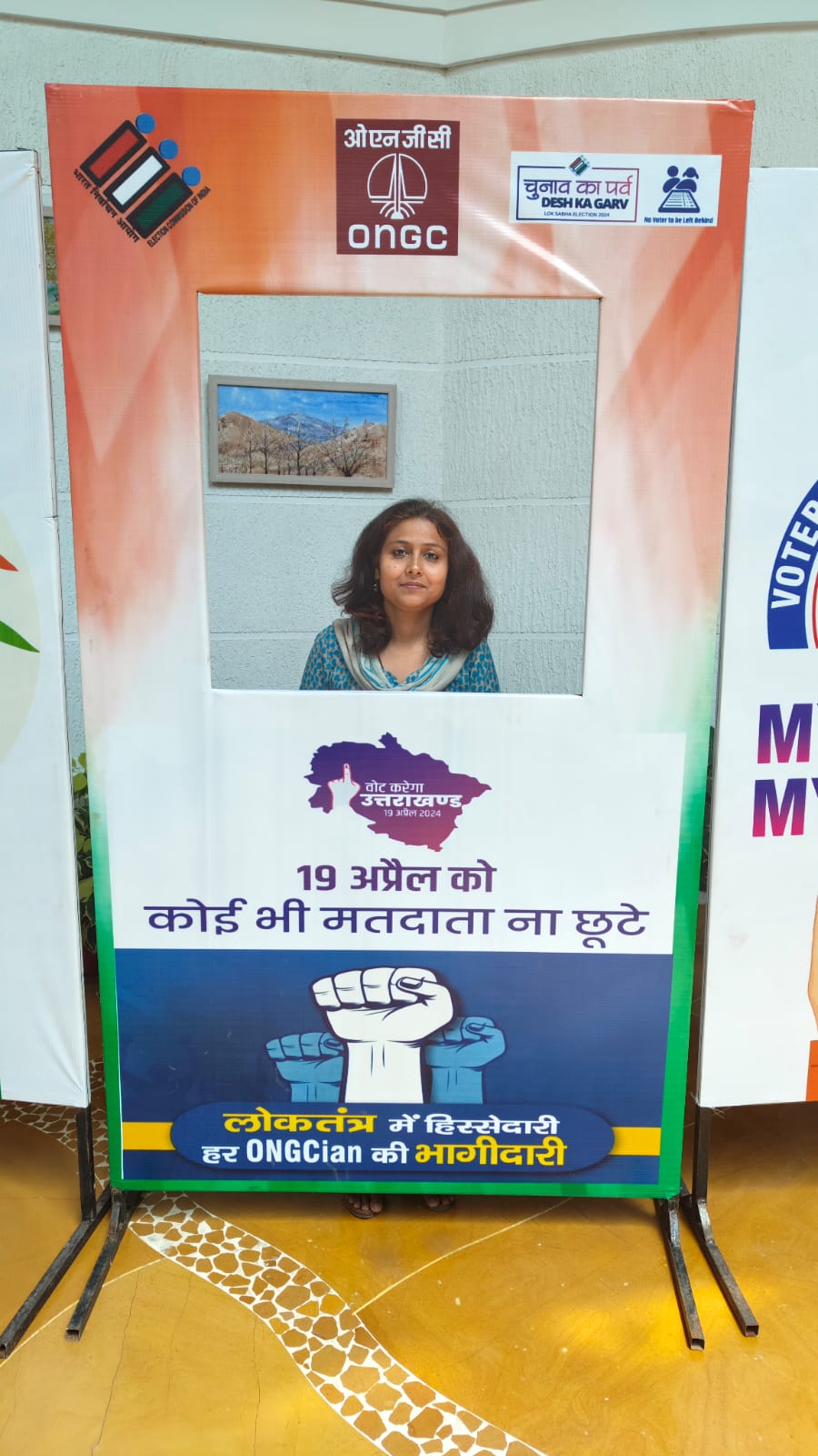 इस अवसर पर ओएनजीसी के अधिशासी निदेशक आनंद गुप्ता P&D द्वारा जिला निर्वाचन टीम का धन्यवाद देते हुए उपस्थित समस्त अधिकारी/कर्मचारी से मतदान की अपील की गई। अंत में सभी के द्वारा मतदाता जागरूकता संबंधी सेल्फी भी ली गई।