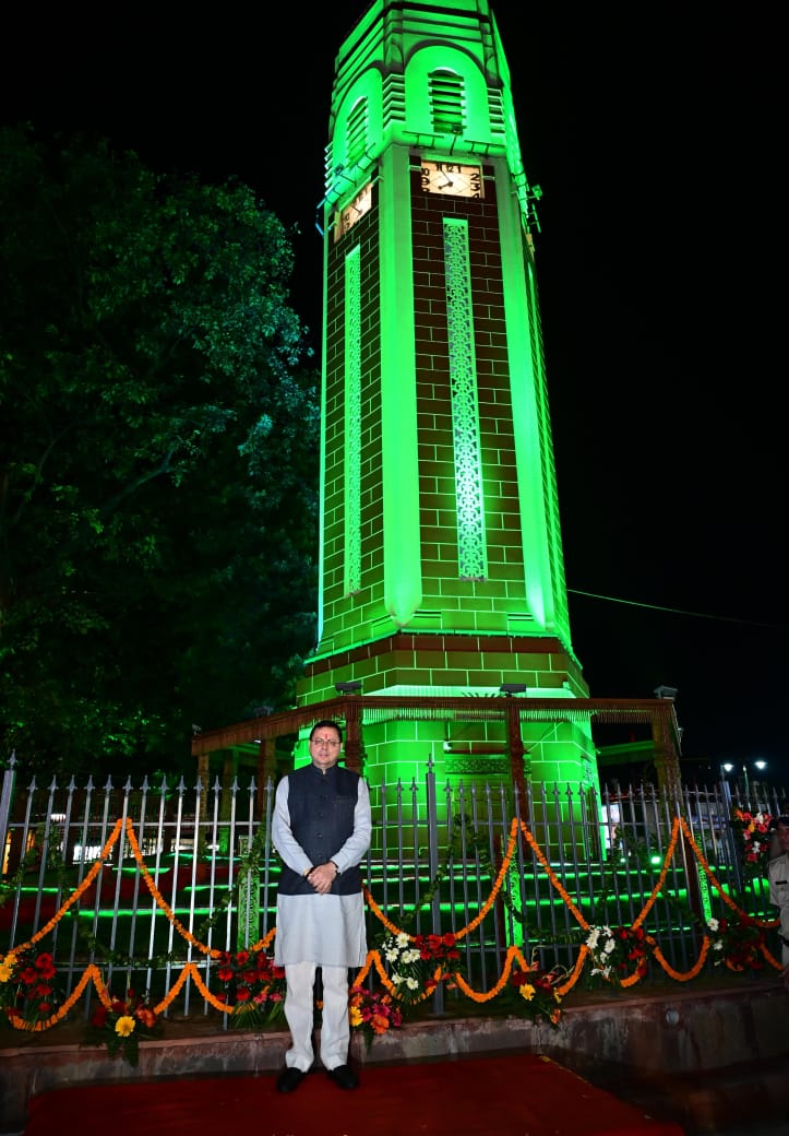मुख्यमंत्री श्री पुष्कर सिंह धामी ने देहरादून के ऐतिहासिक घण्टाघर का जिला प्रशासन द्वारा कराए गए सौंदर्यीकरण, भव्य रूपांतरण एवं स्वचालित प्रकाश व्यवस्था का विधिवत शुभारंभ किया।