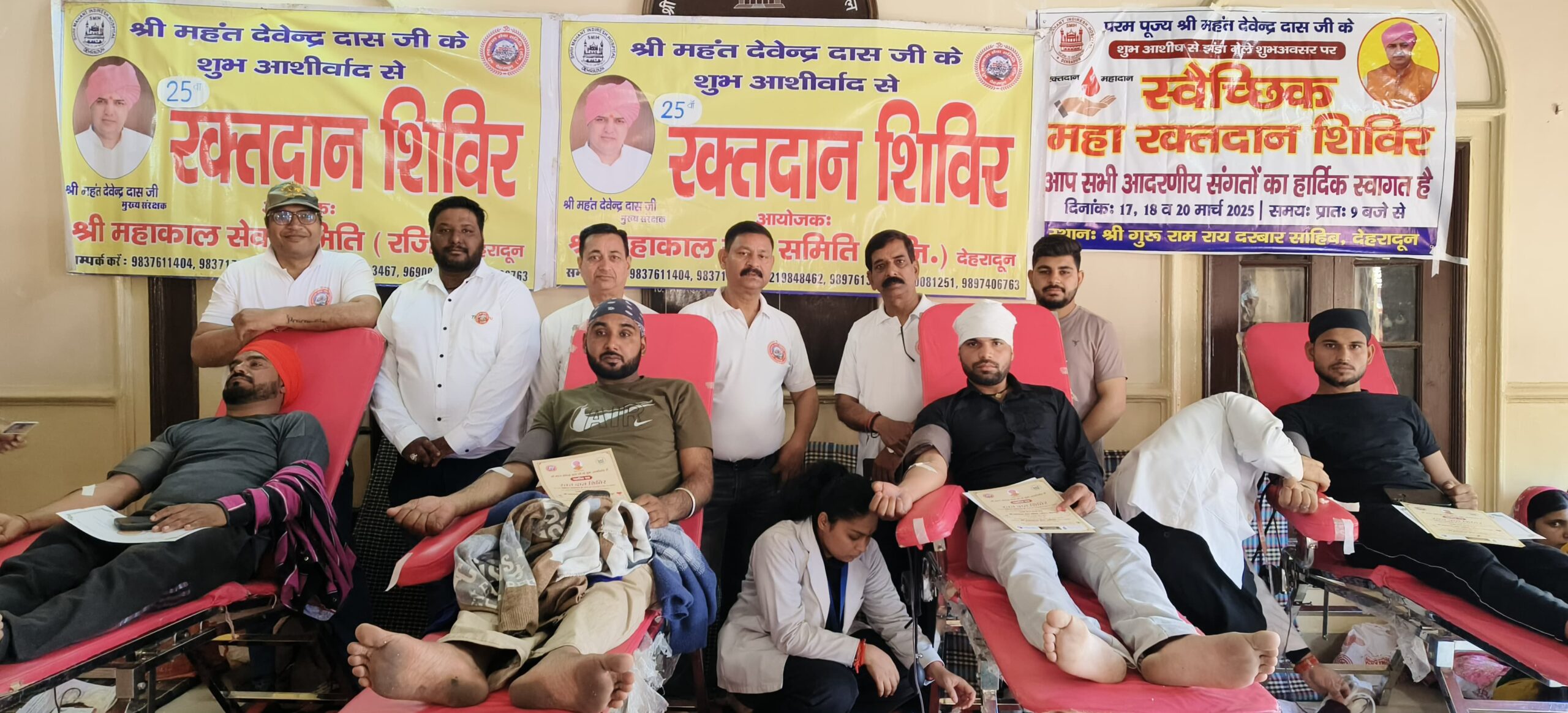 देहरादून के ऐतिहासिक झंडा मेला के उपलक्ष में आज श्री महाकाल सेवा समिति द्वारा महंत इन्द्रेश अस्पताल ब्लड बैंक के तत्वाधान में रक्तदान शिविर का आयोजन किया गया जिसमें 95 युनिट रक्तदान हुआ, प्रातः 10 बजे श्री महंत देवेंद्र दास जी ने दीप प्रज्जवलित कर शिविर का शुभारंभ किया और रक्तदाताओं को प्रशस्ति पत्र प्रदान कर सम्मानित किया।
