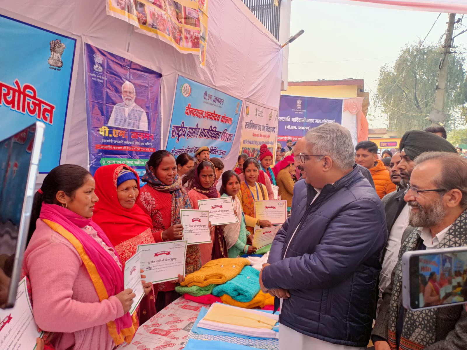 माननीय केंद्रीय मंत्री भूपेंद्र यादव ने विभागों एवं स्वयं सहायता समूहों द्वारा लगाए गए स्टॉल का निरीक्षण किया तथा लाभार्थियों को प्रमाण पत्र एवं योजनाओं के अभिलेख, सामग्री यथा आयुष्मान कार्ड, किसान क्रेडिट कार्ड, उज्ज्वला गैस कनेक्शन, मां लक्ष्मी किट आदि वितरित किए गए।