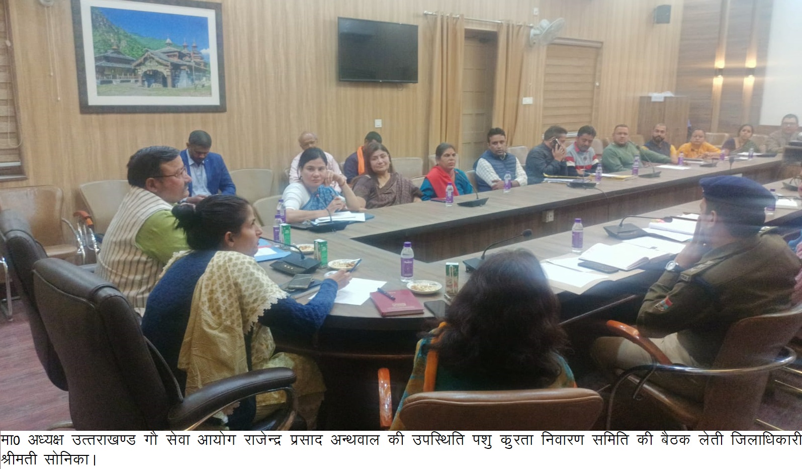 ऋषिपर्णा सभागार कलेक्ट्रेट में पशु कु्ररता निवारण समिति की बैठक मा0 अध्यक्ष उत्तराखण्ड गौ सेवा आयोग राजेन्द्र प्रसाद अन्थवाल की उपस्थिति एवं जिलाधिकारी श्रीमती सोनिका की अध्यक्षता में आयोजित की गई।