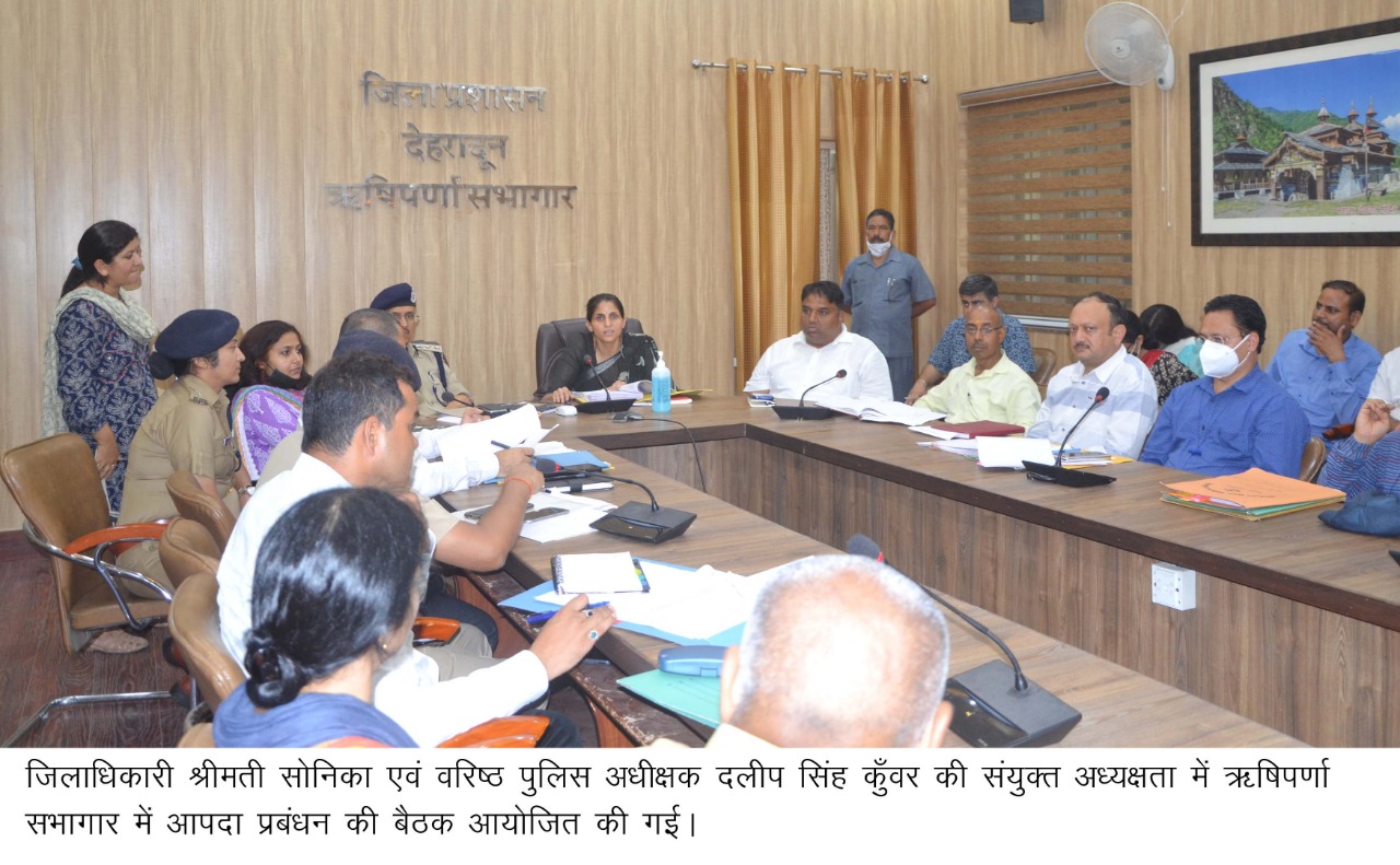 जिलाधिकारी और वरिष्ठ पुलिस अधीक्षक की संयुक्त अध्यक्षता  में आपदा प्रबंधन की बैठक की।