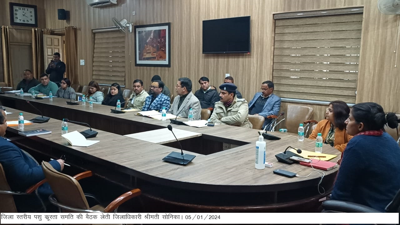 जिलाधिकारी श्रीमती सोनिका की अध्यक्षता में ऋषिपर्णा सभागार कलैक्टेट में जनपदीय पशुकू्ररता निवारण समिति की बैठक आयोजित की गई।