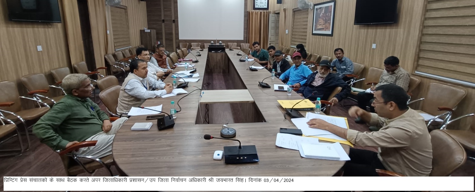 अपर जिलाधिकारी प्रशासन/उप जिला निर्वाचन अधिकारी जयभारत सिंह की अध्यक्षता में प्रिन्टिंग प्रेस के स्वामियों के साथ बैठक आयोजित की ।