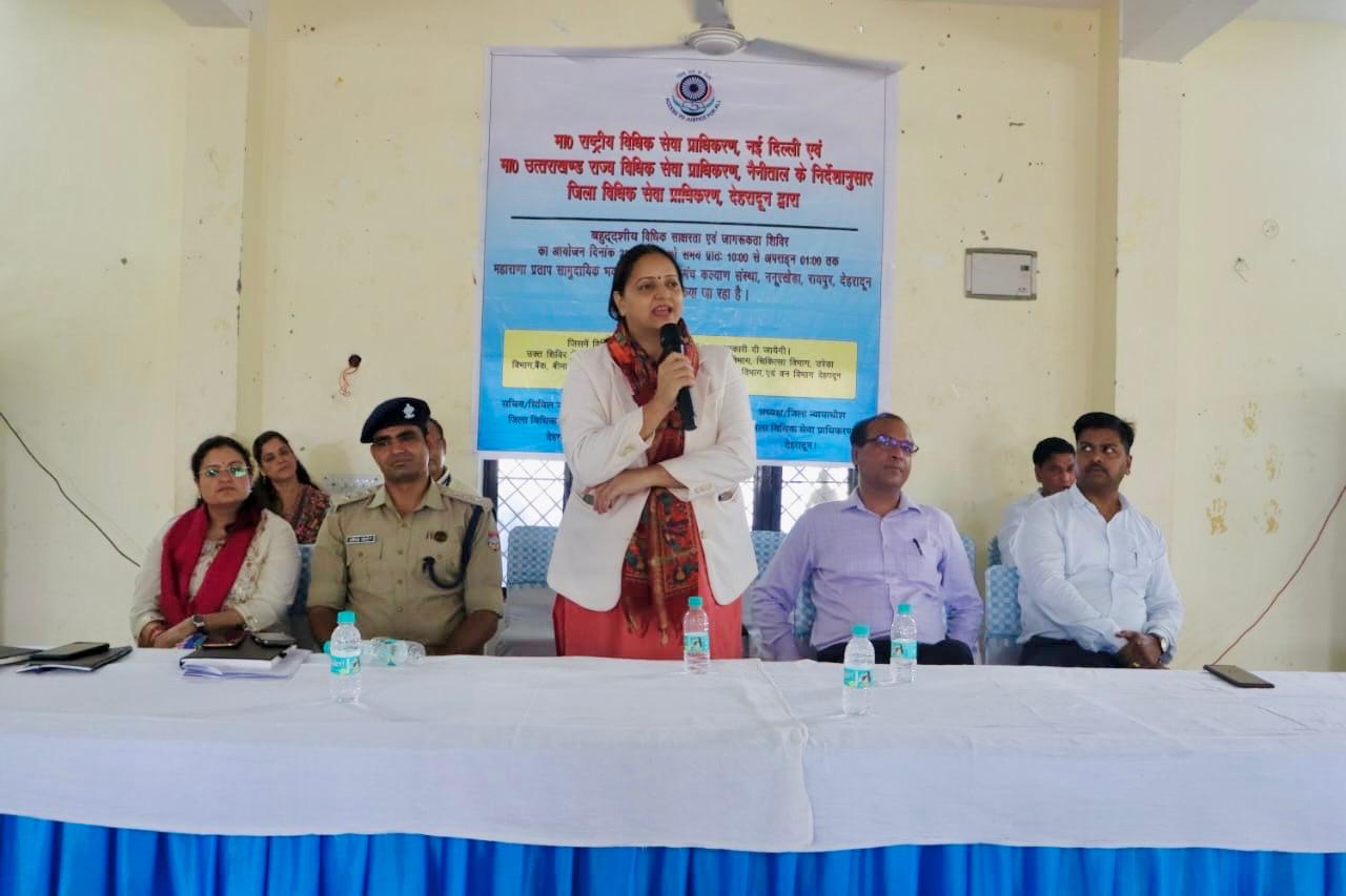 शिविर में सचिव/सिविल जज (वरिष्ठ प्रभाग), जिला विधिक सेवा प्राधिकरण, देहरादून द्वारा जिला विधिक सेवा प्राधिकरण, देहरादून से मिलने वाली निशुल्क विधिक सेवा के बारे में उपस्थित प्रतिभागियों को जागरूक किया।
