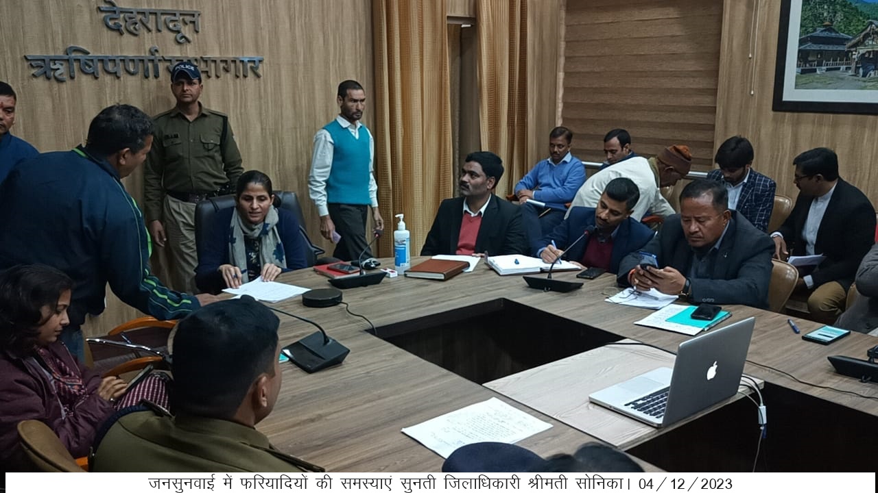 जनसुनवाई में मुख्य विकास अधिकारी सुश्री झरना कमठान, मुख्य नगर आयुक्त नगर निगम गौरव कुमार, अपर जिलाधिकारी वित्त एवं राजस्व रामजी शरण शर्मा, अपर नगर आयुक्त नगर निगम बीर सिंह बुदियाल, नगर मजिस्टेªट प्रत्युष सिंह, उप जिलाधिकारी शालिनी नेगी, उप जिलाधिकारी सदर दीपक कुमार, पुलिस अधीक्षक क्राइम मिथिलेश कुमार, उप जिलाधिकारी युक्ता मिश्रा, मुख्य चिकित्साधिकारी डॉ संजय जैन, मुख्य शिक्षा अधिकारी प्रदीप रावत सहित सम्बन्धित विभागों के अधिकारी उपस्थित रहे।