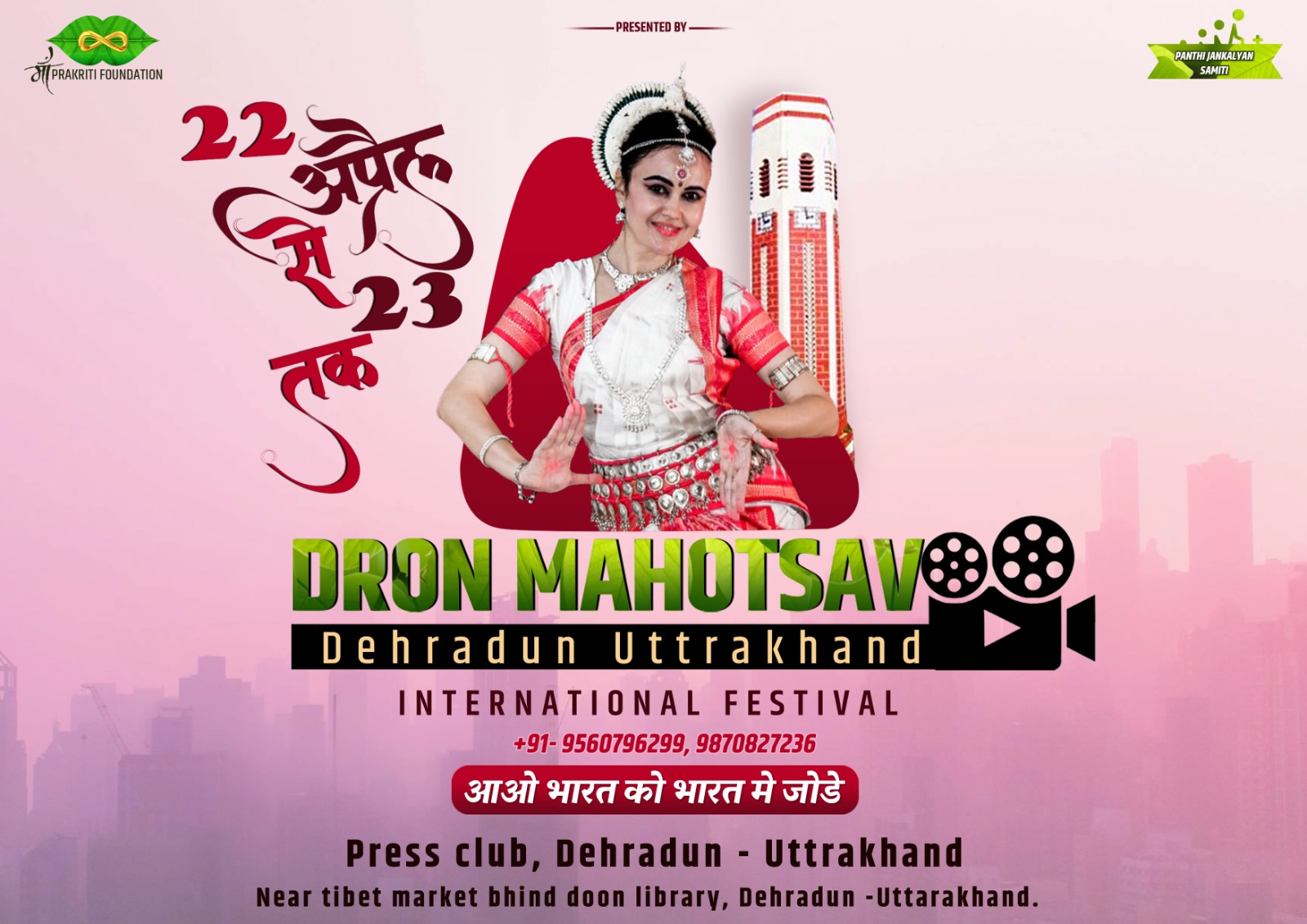 मां प्रकृति फाउंडेशन एवं पंथी जन कल्याण समिति द्वारा देहरादून में 22 और 23 अप्रैल को दो दिवसीय सांस्कृतिक महोत्सव का आयोजन किया जा रहा है। जिसमें देश के विभिन्न राज्यों से आए हुए कलाकार नृत्य, संगीत, नाटक के द्वारा अपनी अपनी कलाओं का प्रदर्शन करते हुए प्रतिभाग करेंगे।साथ ही कवि सम्मेलन तथा मुशायरे का भी दर्शक लुफ्त उठा पायेंगे