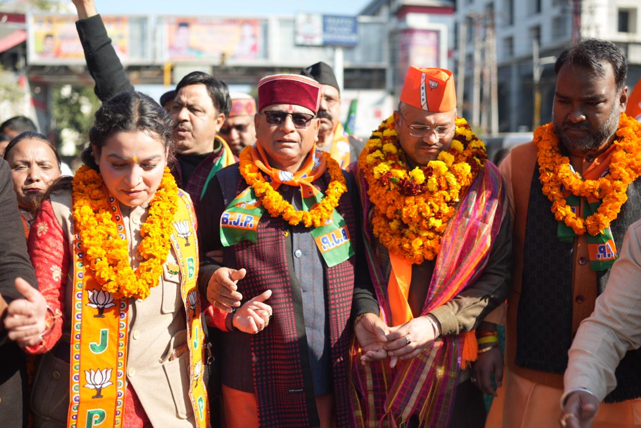 इस अवसर पर माननीय मुख्यमंत्री आदरणीय पुष्कर सिंह धामी जी ने कहा कि नगर निगम के चुनावो की तरफ हम जा रहे है देहरादून नगर निगम में हमारी पार्टी ने बहुत सौम्य स्वभाव के प्रत्याशी श्री सौरभ थपलियाल जी को मौका दिया , सौरभ थपलियाल छात्र राजनीति से लगातार संघर्ष करते हुए यहां पहुंचे है । श्री पुष्कर धामी जी ने कहा कि कैंट विधानसभा को स्वर्गीय हरबंस कपूर जी भारतीय जनता पार्टी का एक अभेद किला बनाया है हर चुनाव में यहां से पार्टी को बहुत बड़ी बढ़त मिली है और इस बार भी इतिहास दोहराने वाला है । हमारी सरकार सिर्फ और सिर्फ आम जनता के कल्याण के लिए कार्य करती है हमारा एक ही ध्येय है जनता और इस देश प्रदेश की समृद्धि के लिए कार्य करना। देश के यशस्वी प्रधानमंत्री आदरणीय नरेंद्र मोदी जी के नेतृत्व में पिछले दशक में कई जन कल्याण योजनाओं के माध्यम से लोगों को लाभान्वित करने का काम किया गया है मोदी जी ने महिलाओं को सशक्त और मजबूत बनाने के लिए लखपति दीदी जैसी कई योजनाओं को लेकर आए हैं भारत सरकार ने महिला सशक्तिकरण के लिए महिलाओं को सरकारी नौकरियों में 30% आरक्षण दिया है। हमारी सरकार भी लगातार समाज में काम करते हुए इस प्रदेश को सशक्त और सुरक्षित मजबूत बनाने के लिए कई नियमों के माध्यम से इस प्रदेश का चौमुखी विकास करने में लगी है। आने वाले समय में भाजपा प्रत्याशी सौरभ थपलियाल को अधिक से अधिक मतों से विजय बनाकर नगर निगम बोर्ड को ट्रिपल इंजन की सरकार बनाने में आप सभी अपनी अहम भूमिका निभाएंगे ।
