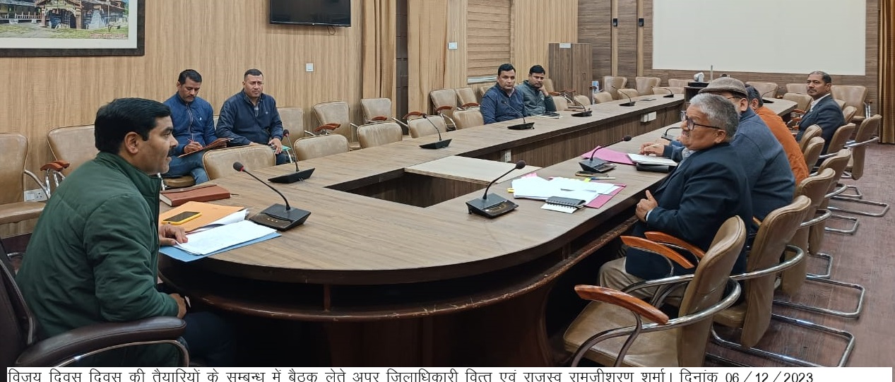 जिलाधिकारी के निर्देशों के क्रम में अपर जिलाधिकारी वित्त एवं राजस्व रामजीशरण शर्मा की अध्यक्षता में ऋषिपर्णा सभागार में विजय दिवस को मनाए जाने के सम्बन्ध में बैठक आयेाजित की गई।