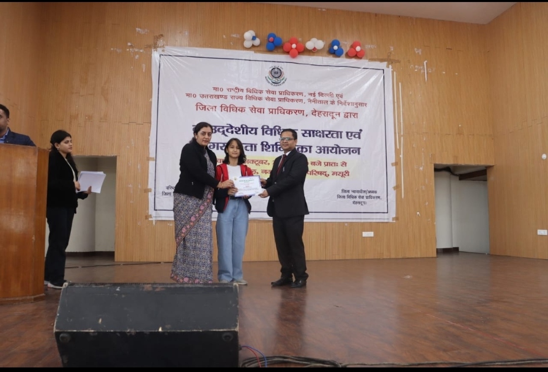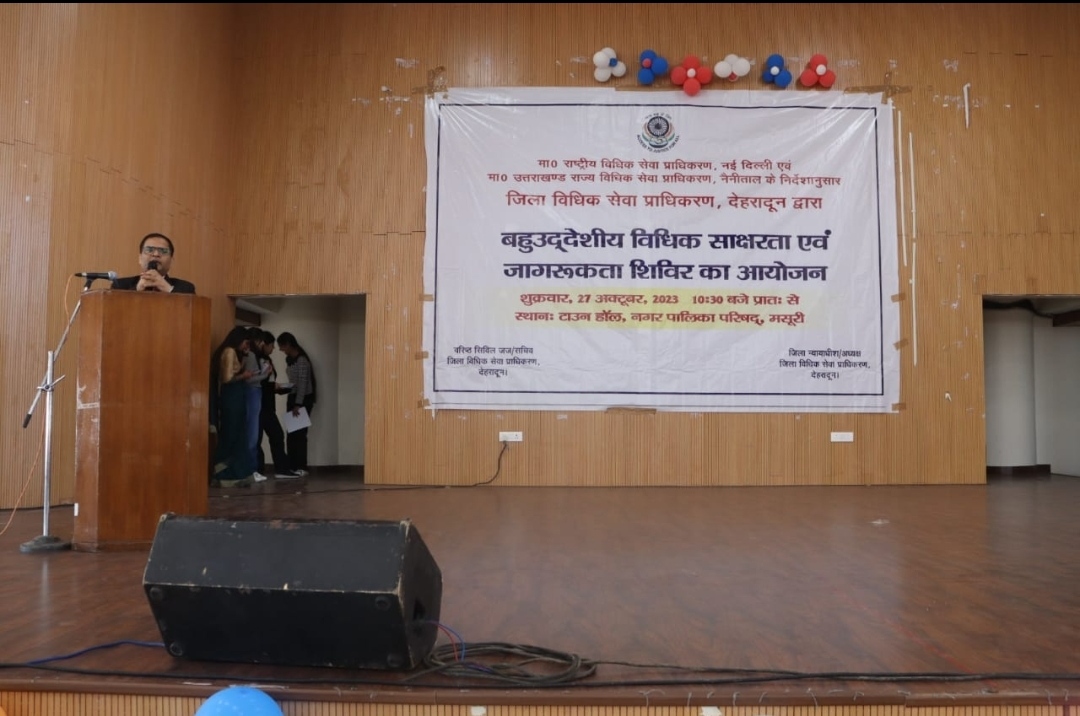माननीय उत्तराखण्ड राज्य विधिक सेवा प्राधिकरण, नैनीताल एवं मा0 जिला न्यायाधीश/मा0 अध्यक्ष जिला विधिक सेवा प्राधिकरण, देहरादून निर्देशानुसार आज जनपद देहरादून के स्थान-टॉउन हॉल, नगर पालिका परिषद मसूरी, देहरादून, उत्तराखण्ड के परिसर में बहुउद्देशीय विधिक साक्षरता एवं जागरूकता शिविर का आयोजन किया गया।
