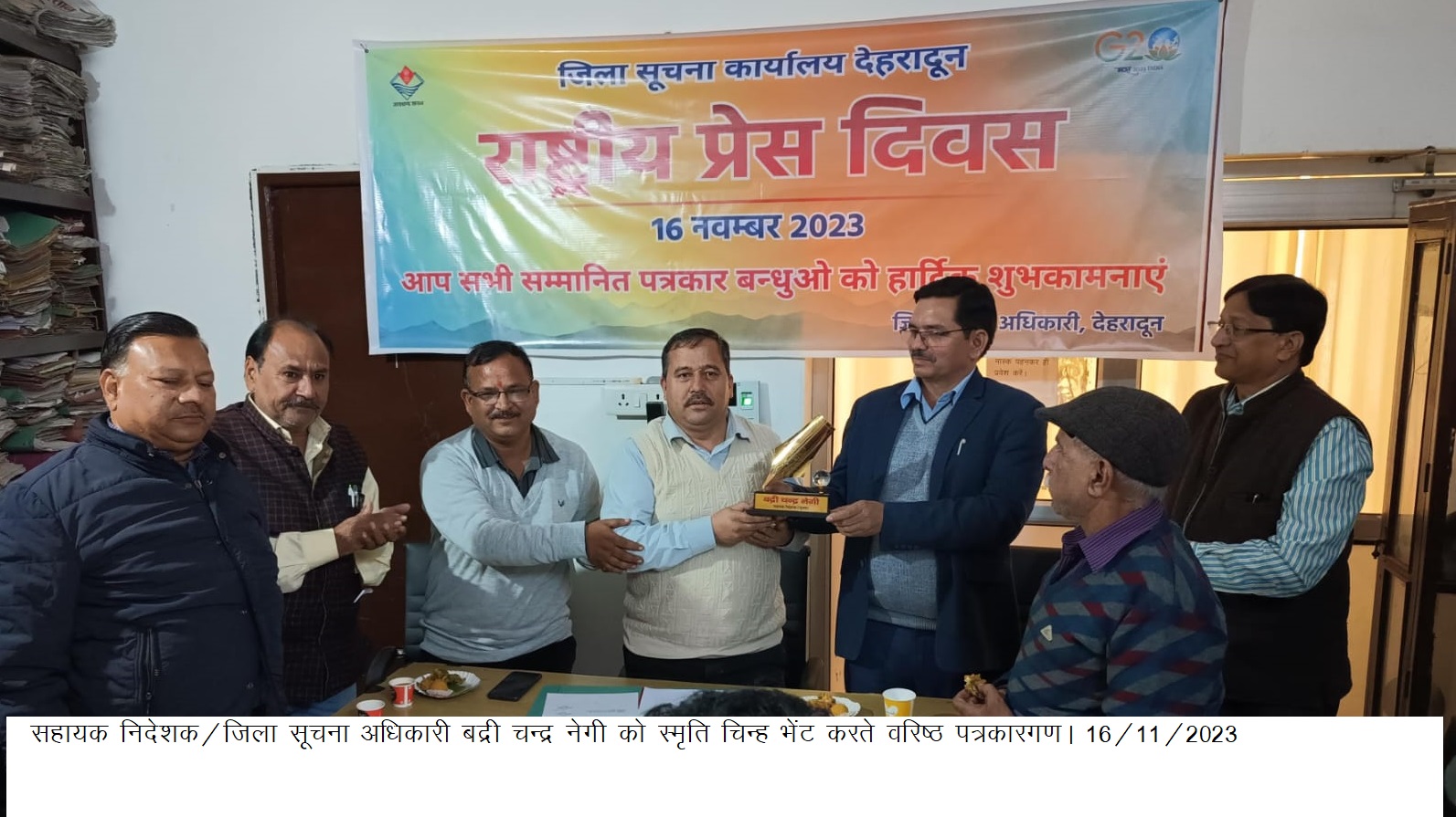 राष्ट्रीय प्रेस दिवस के अवसर आज सहायक निदेशक/ जिला सूचना अधिकारी बद्री चन्द्र नेगी ने गोष्ठी का आयोजन किया।