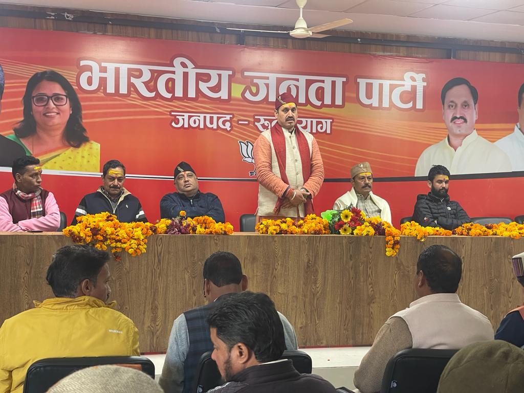 इस मौके पर प्रदेश प्रवक्ता बिरेंद्र बिष्ट जी ने नव नियुक्त पदाधिकारियों को बधाई देकर कार्यकर्ताओं को संबोधित करते हुए कहा कि प्रदेश के मुख्यमंत्री पुष्कर सिंह धामी जी के नेतृत्व में सरकार अविस्मरणीय कार्य कर रही है जिनको आम जन तक पहुंचाना संगठन का दायित्व है । उन्होंने कहा भाजपा कार्यकर्ता आधारित पार्टी है जो अंतिम पायदान पर मौजूद कार्यकर्ता की चिंता करती है। संगठन में स्थान पाने वाले कार्यकर्ताओं के अलावा संगठन की मजबूती के लिए हर कार्यकर्ता को जिम्मेदारी से कार्य करना चाहिए । एक बूथ का कार्यकर्ता प्रदेश का मुख्यमंत्री से लेकर राष्ट्रीय अध्यक्ष भी इसी पार्टी से बनते हैं।