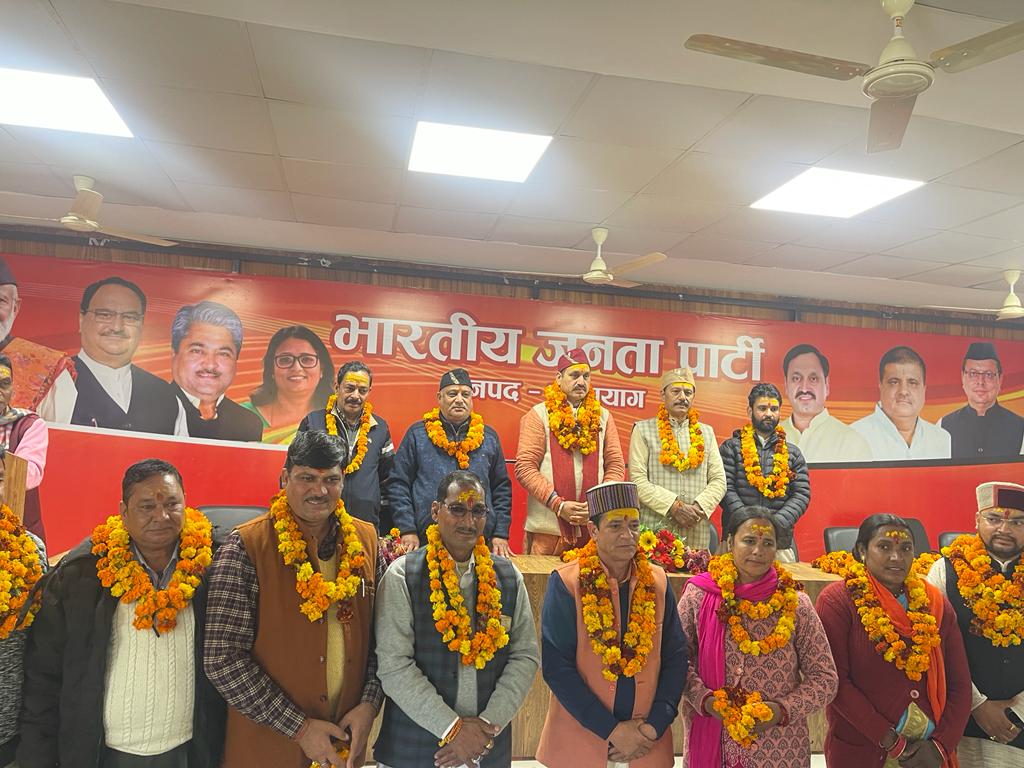 नव नियुक्त पदाधिकारियों में जिला महामंत्री भारत भूषण भट्ट, विनोद देवशाली,जिला मंत्री ओम प्रकाश बहुगुणा,गुलाबी देवी, कोषाध्यक्ष कुलबीर रावत,कार्यालय प्रभारी सुनील नौटियाल मौजूद थे।इस अवसर पर जिला महामंत्री भारत भूषण भट्ट, विनोद देवशाली, जिला उपाध्यक्ष त्रिलोक सिंह रावत, सुरेन्द्र जोशी , विजयलक्ष्मी पवार, संपूर्णानंद सेमवाल, अरुण चमोली, प्रेमलाल भारती ,जिला मंत्री ओमप्रकाश बहुगुणा, अंजना रावत, मातबर सिंह बिष्ट , राकेश सिंह भंडारी , गुलाबी देवी ,गंभीर सिंह बिष्ट, जिला कोषाध्यक्ष कुलवीर सिंह रावत ,जिला कार्यालय मंत्री सुनील नौटियाल जिला मीडिया प्रभारी सतेन्द्र बर्त्वाल ,सहित भाजयुमो जिला अध्यक्ष विकास डिमरी व दरमियान जखवाला ,सविता भंडारी, सुमन जमलोकी सुनीता बर्त्वाल , घनश्याम पुरोहित ,बुद्धिबल्लभ थपलियाल आशीष नौटियाल ,आशीष कंडारी लक्ष्मण बर्त्वाल , सुनीता भंडारी, सुनीता सेमवाल, गणेश बिष्ट, हरि सिंह बिष्ट चंद्र मोहन सेमवाल, भूपेंद्र बिष्ट, प्रदीप राणा आदि वरिष्ठ पदाधिकारी एवं कार्यकर्ता उपस्थित थे।