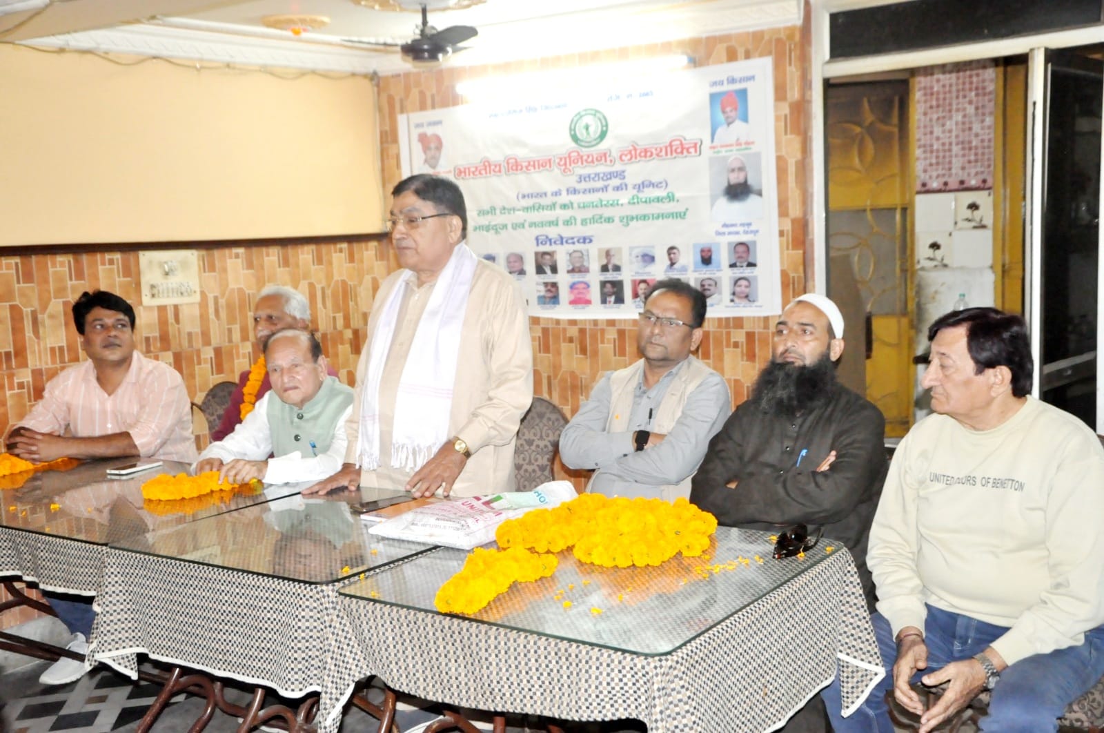 भारतीय किसान यूनियन, लोकशक्ति, द्वारा आज स्थानीय उज्जवल रेस्टोरेन्ट, परेड ग्राउण्ड देहरादून में एक कार्यक्रम आयोजित किया गया। कार्यक्रम में उत्तराखण्ड के प्रदेश अध्यक्ष सुरेन्द्र दत्त शर्मा ने कार्यकर्ताओं को सम्बोधित करते हुए कहा कि आज केन्द्र और प्रदेश की सरकारें किसानों की ओर ध्यान नहीं दे रही है। उन्हें गन्ने का भुगतान मिलों द्वारा नहीं किया जा रहा है और न ही सरकारें गन्ने का मूल्य बढा रही हैं। यदि किसान दूसरे प्रदेश में धान और गेहूं बेचने जाता है तो उस पर भी परेशानी है। बिजली का बिल भी माफ नहीं किया जा है।