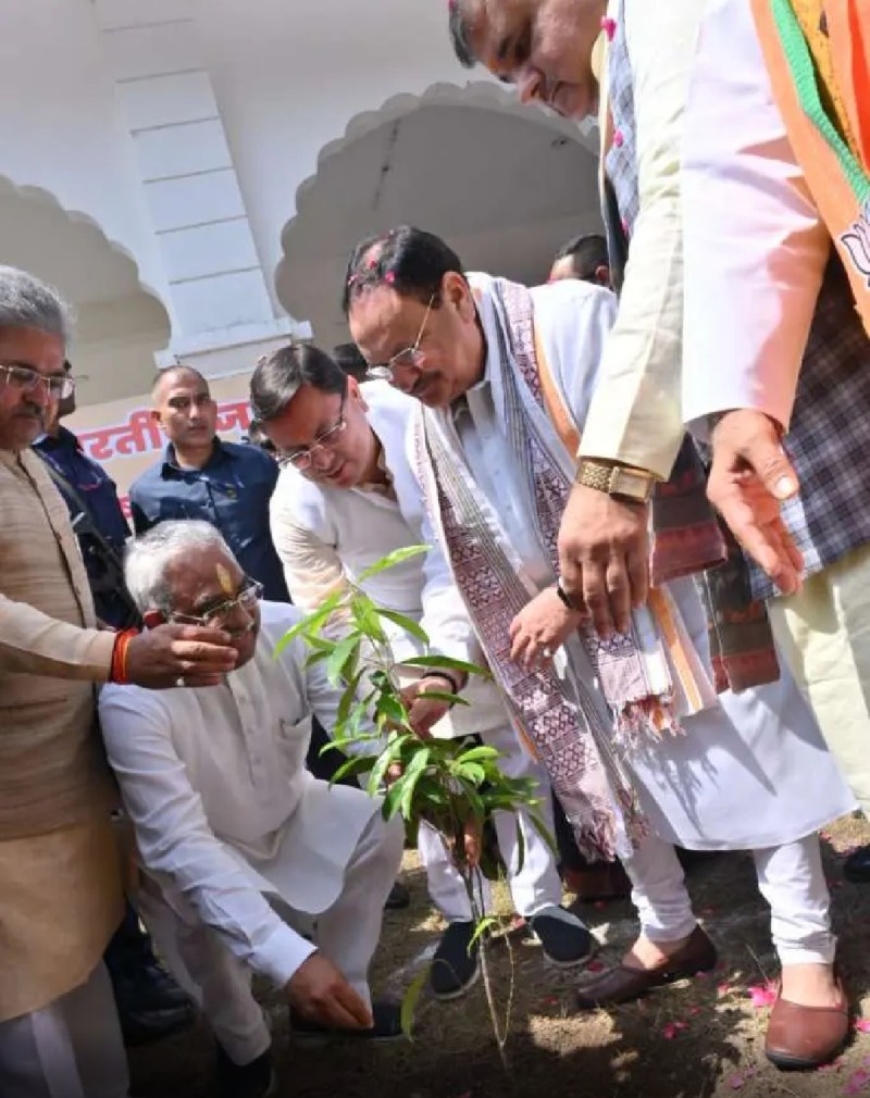 भाजपा के राष्ट्रीय अध्यक्ष जे.पी नड्डा और मुख्यमंत्री पुष्कर सिंह धामी ने संयुक्त रूप से पौधरोपण किया।