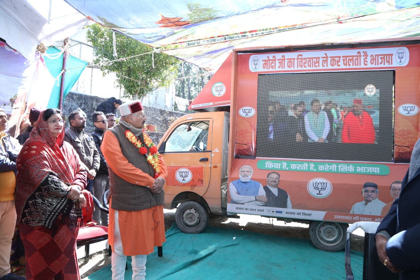 इस अवसर पर कैबिनेट मंत्री और भारतीय जनता पार्टी के चौबट्टाखाल से प्रत्याशी सतपाल महाराज ने कहा कि प्रधानमंत्री नरेंद्र मोदी ने जहां राज्य को 18 हजार करोड़ की योजनाएं देकर डबल इंजन की महत्ता को बताया है, वहीं दूसरी ओर स्वयं उनके द्वारा अपने विधानसभा क्षेत्र में सतपुली एवं स्यूंसी झील सहित करोड़ों रुपए की पंपिंग पेयजल योजना सहित अनेक विकास कार्य किए गए हैं। उन्होंने कहा कि क्षेत्र के विकास के लिए वह पूरी तरह संकल्पित हैं।