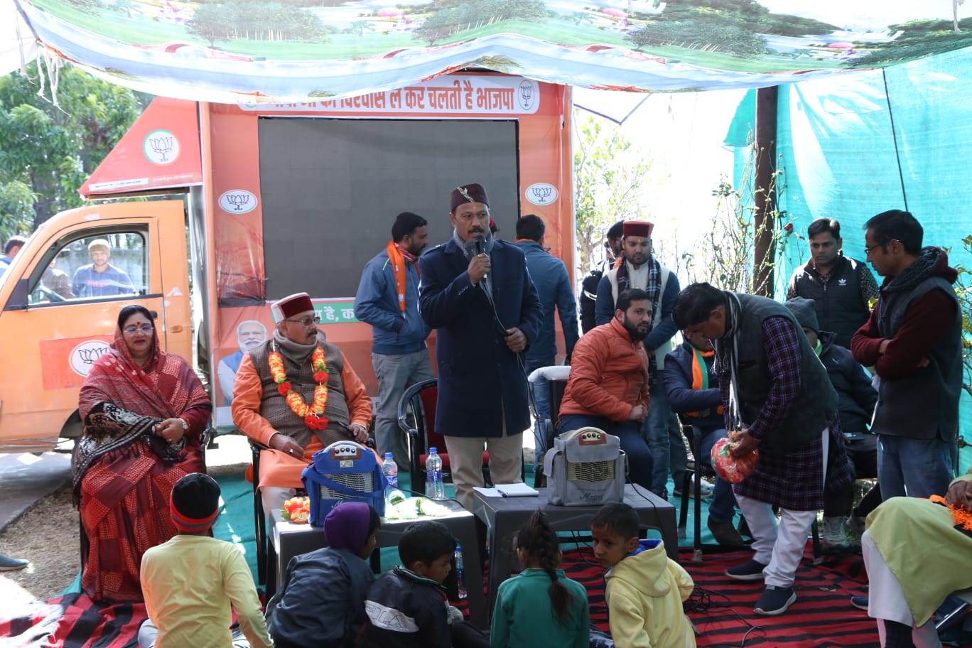 श्री महाराज ने क्षेत्रीय जनता से अपील की कि वह 14 फरवरी को होने वाले विधानसभा चुनाव में कमल के फूल का बटन दबाकर मोदी जी के हाथों को मजबूत करें।