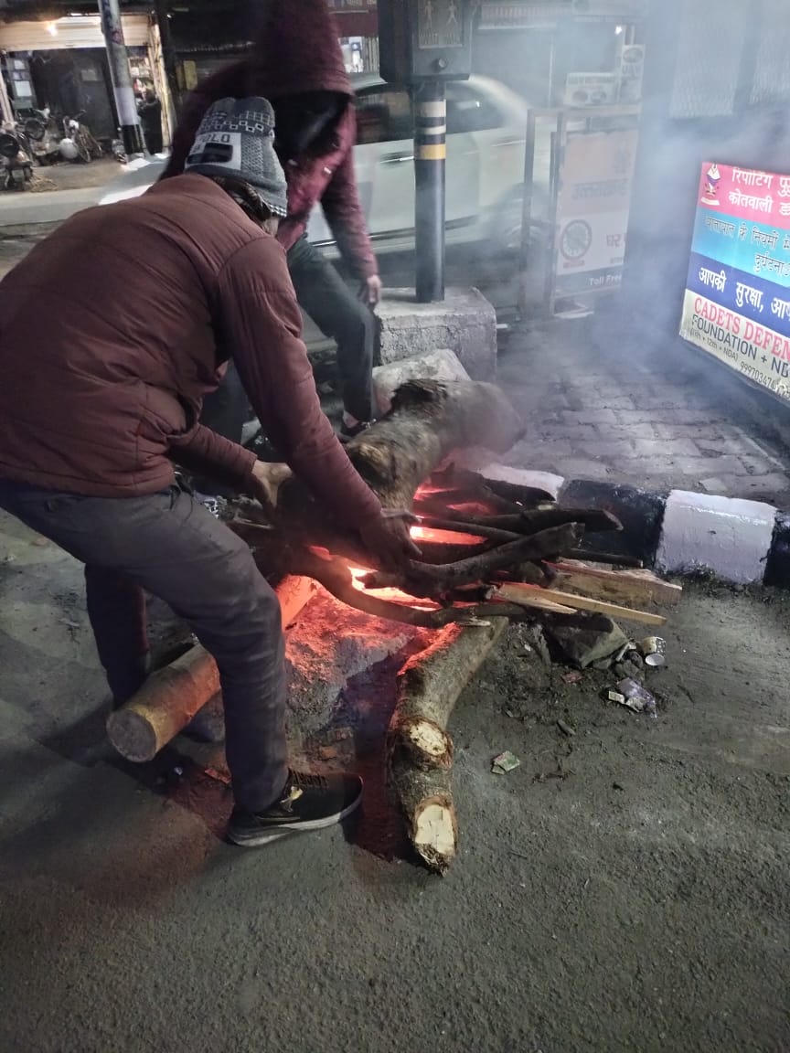 (नगर पालिका परिषद मसूरी,डोईवाला,देहरादून में अलाव जलाई)