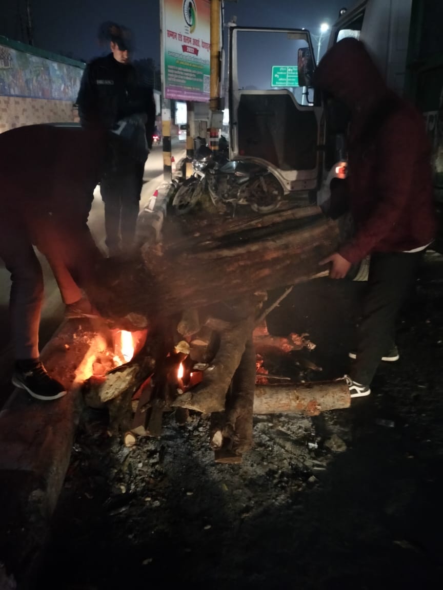 जिलाधिकारी श्रीमती सोनिका के निर्देशों के अनुपालन में आज अलग अलग स्थानों पर अलाव जलाई गई।