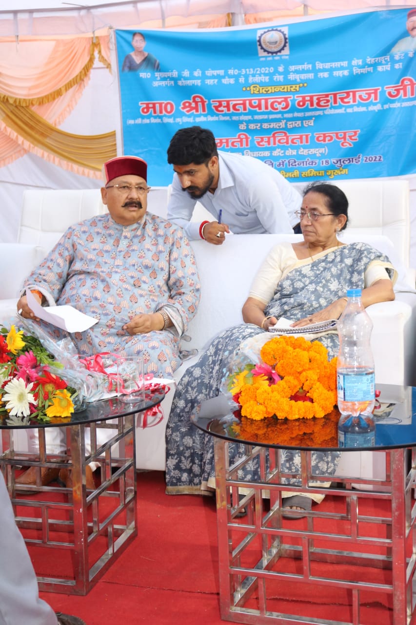 प्रदेश के सिंचाई लोक निर्माण पर्यटन पंचायती राज ग्रामीण निर्माण जलागम धर्मस्व एवं संस्कृति मंत्री सतपाल महाराज ने गढ़ी कैंट विधानसभा क्षेत्र के अंतर्गत नहर चौक से हेलीपैड रोड नींबू वाला तक सिंचाई विभाग द्वारा 148.23 लाख की धनराशि से निर्मित होने वाली सड़क के शिलान्यास अवसर पर कही। शिलान्यास कार्यक्रम में स्थानीय लोगों को संबोधित करते हुए सिंचाई मंत्री सतपाल महाराज ने कहा कि जो सपना स्वर्गीय हरबंस कपूर जी ने देखा था आज उसे साकार करने का वक्त आ गया है। स्वर्गीय श्री कपूर निरंतर क्षेत्र के विकास को सक्रिय रहे हैं। आज उनकी स्नेह स्मृतियां हमारे हृदय पर अंकित हैं।