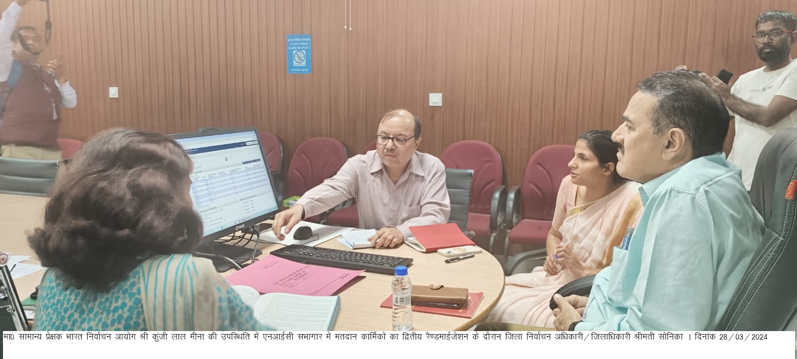 लोकसभा सामान्य निर्वाचन-2024 निष्पक्ष एवं निर्विघ्न सम्पन्न कराने हेतु आज मा0 सामान्य प्रेक्षक श्री कुंजी लाल मीना की उपस्थिति में जिला निर्वाचन अधिकारी/जिलाधिकारी श्रीमती सोनिका द्वारा एनआईसी सभागार में मतदान कार्मिकों का द्वितीय रैण्डमाईजेशन करते हुए विधानसभावार टीमे बनाई गई। इस अवसर पर नोडल कार्मिक/मुख्य विकास अधिकारी सुश्री झरना कमठान सहित सम्बन्धित अधिकारी उपस्थित रहे।
