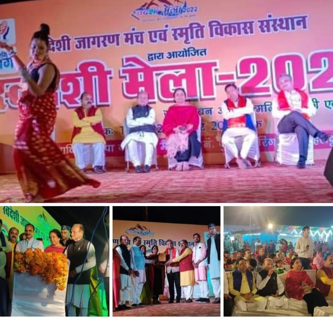 उत्तराखंड के कबीना मंत्री चंदन राम दास ने स्वदेशी जागरण मंच के द्वारा रिंग रोड स्थित भाजपा कार्यालय ग्राउंड मैं आयोजित मेले के अवलोकन के पश्चात सांस्कृतिक पंडाल मैं आयोजित कार्यक्रम में कहा कि प्रदेश सरकार लघु उद्योग के प्रोत्साहन हेतु अनेक योजनाएं बना रही है एक जिले में दो परियोजनाओं के अंतर्गत हमारे युवा साइंस और टेक्नोलॉजी मैं नई और अच्छी पहचान बना रहे हैं।