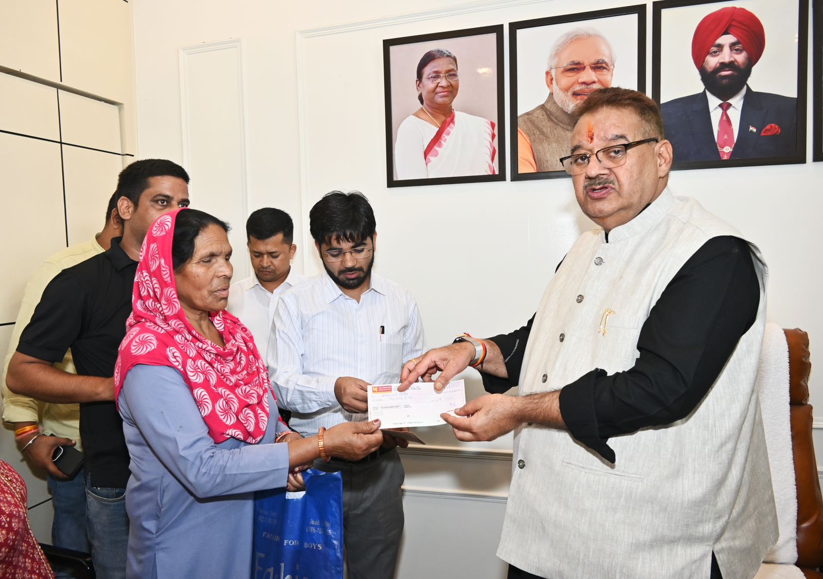 सहायता राशि के चैक संजय सोनकर, रविन्द्र कुमार, विशाल, दीपा, मीना, विमला, हेमंत कपुर, आनन्द पटेल,पुष्पा, पवित्रा देवी, राजेन्द्र प्रसाद को दिए गए।