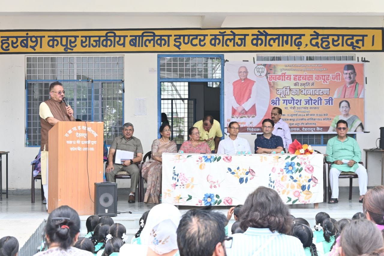 कैबिनेट मंत्री गणेश जोशी ने हरबंस कपूर राजकीय बालिका इण्टर कॉलेज में स्व० हरबंस कपूर की स्मृति में निर्मित मूर्ति का अनावरण कार्यक्रम में प्रतिभाग किया।