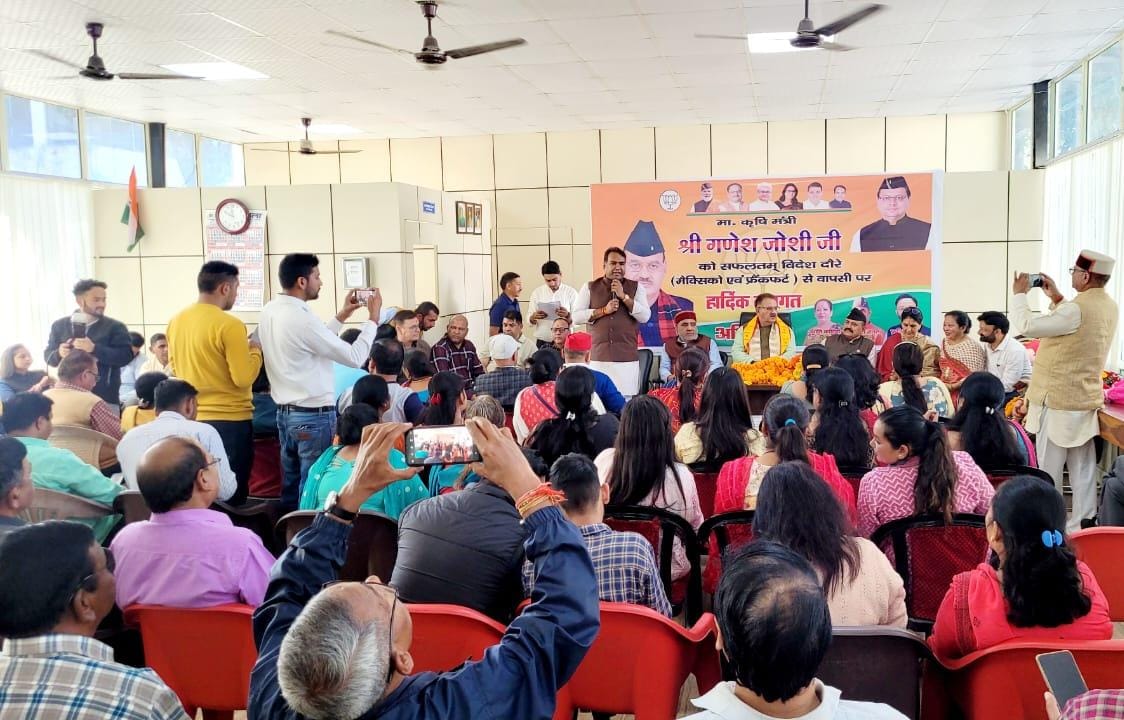 उत्तराखंड के कैबिनेट मंत्री गणेश जोशी जी के सफल 10 दिवसीय विदेश दौरे से लौटने पर महानगर के अध्यक्ष सिद्धार्थ उमेश अग्रवाल द्वारा स्वागत अभिनंदन किया गया।