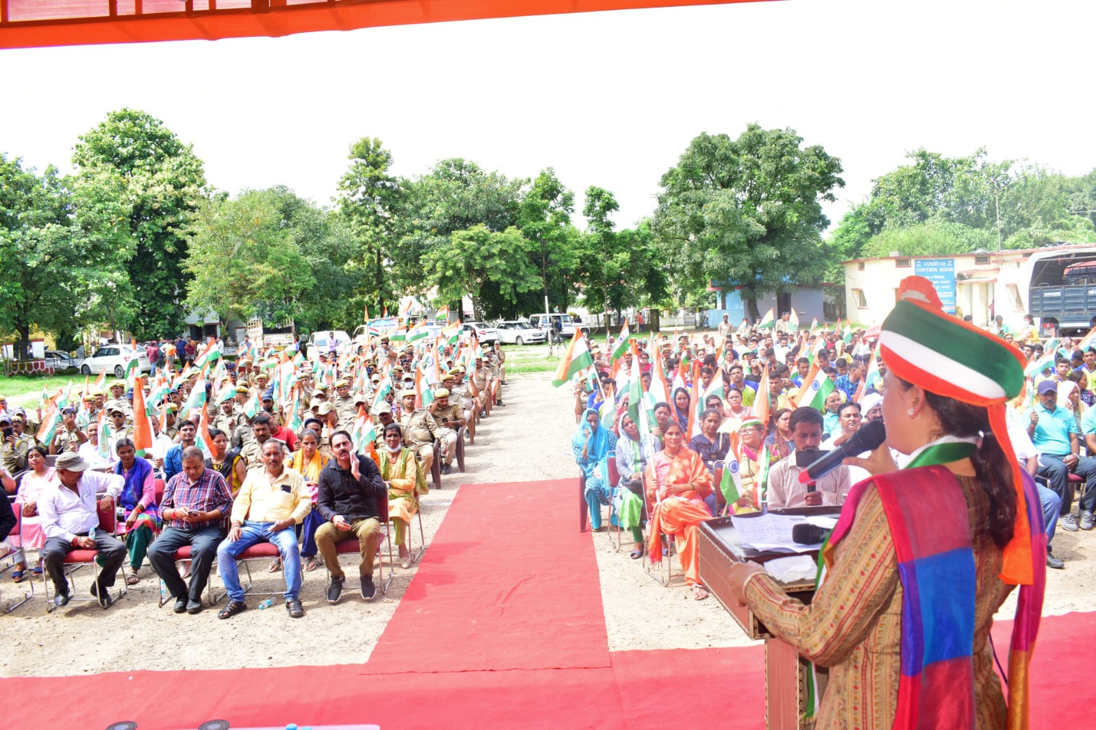 मंत्री रेखा आर्या ने अपने उद्बोधन मे तिरंगा झंडे के तीनों रंगों की व्याख्या करते हुए बताया कि केसरिया रंग हमे बताता है कि हम साहसी हों ,सफेद रंग हमे यह बताता है कि देश मे सत्यता और शांति कायम है साथ ही हरा रंग हरियाली का ,सुख समृद्धि का देश की खुशहाली के प्रतीक के रूप में हमे भान कराता है। साथ ही माननीय मंत्री ने कहा कि आजादी के 75वें वर्ष पर अमृत महोत्सव के रूप में आजादी का जश्न मनाया जा रहा है।