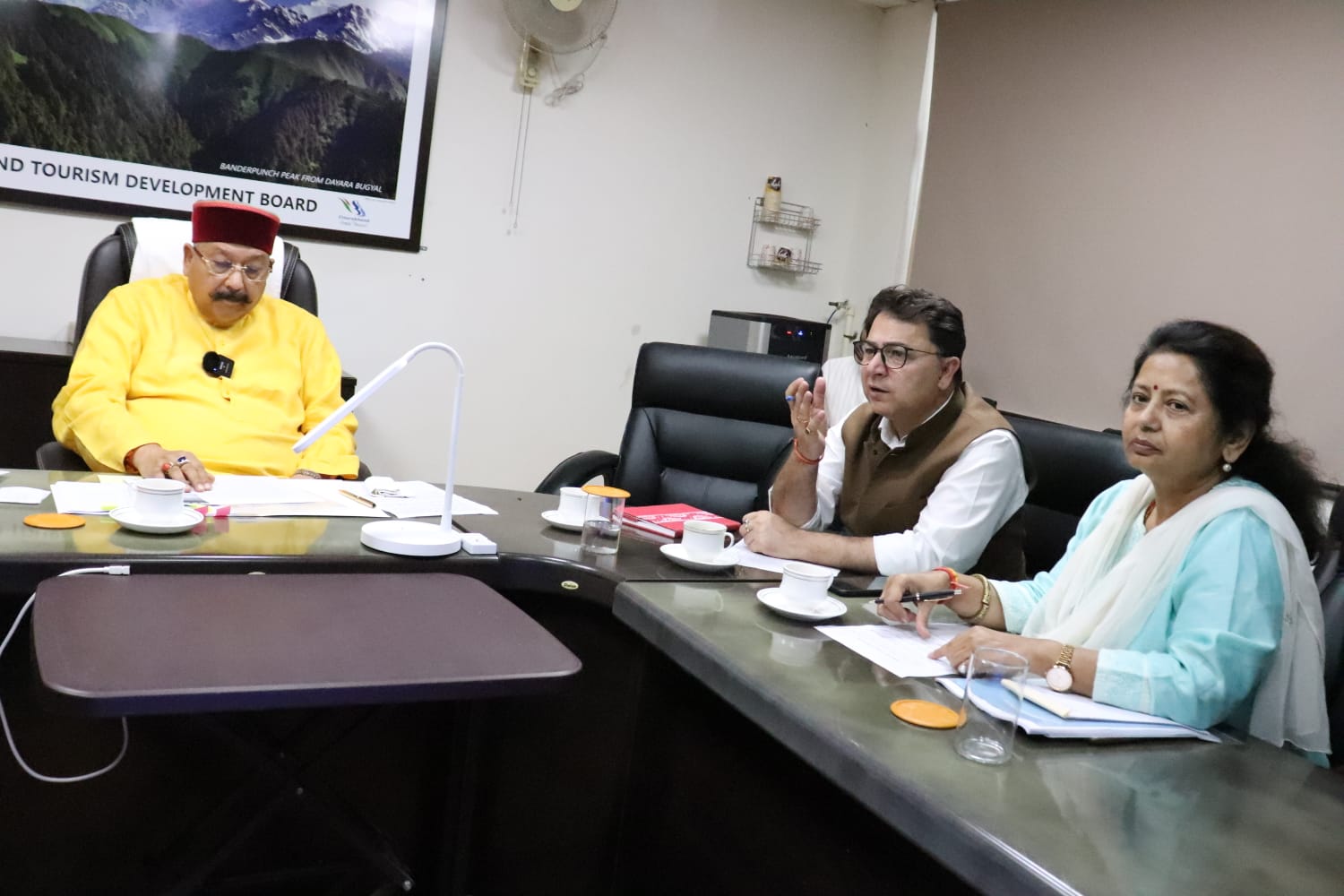 समीक्षा बैठक में पर्यटन सचिव दिलीप जावलकर, विवेक चौहान अश्वनी पुंडीर, संस्कृति महानिदेशक रणवीर सिंह चौहान, निदेशक बीना भट्ट, एचओडी सिंचाई मुकेश मोहन एवं लोक निर्माण विभाग के एचओडी अयाज अहमद सहित अनेक अधिकारी उपस्थित थे।