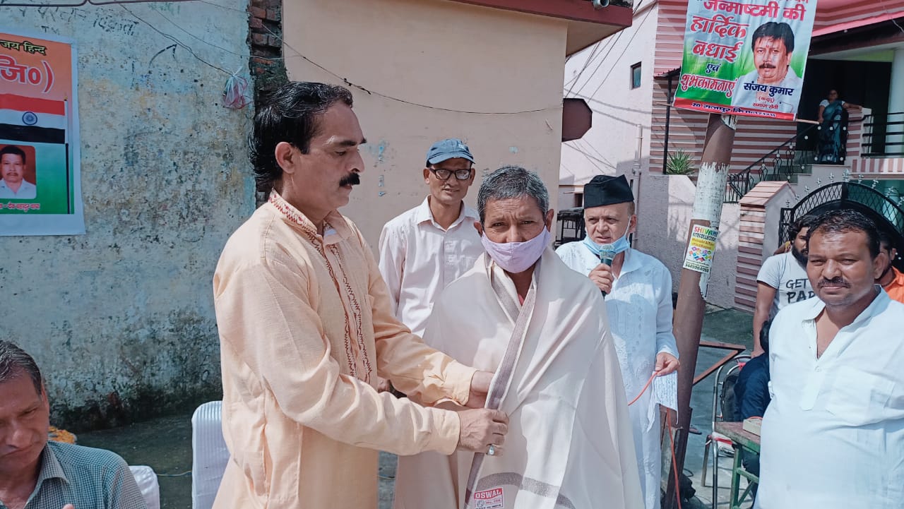 समाजसेवी श्री शंकर चौरसिया जी को समाज में उत्कृष्ट योगदान के लिए शाल पहनाकर सम्मान किया।