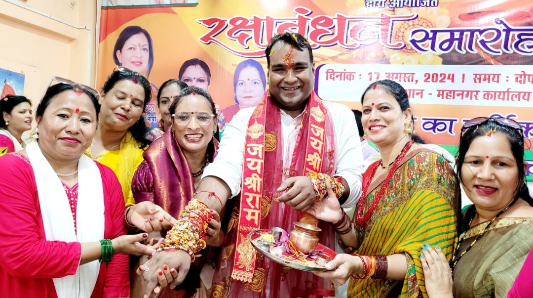 महानगर  अध्यक्ष सिद्धार्थ उमेश अग्रवाल ने बताया की रक्षाबंधन सामाजिक समरसता का प्रतीक  पावन पर्व है। महिला मोर्चा द्वारा बहुत ही उत्साह एवं उमंग के साथ महानगर की बहनों ने अपने अध्यक्ष के हाथ में राखी बांध कर उन्हें अपार स्नेह एवम आशीर्वाद प्रदान किया।