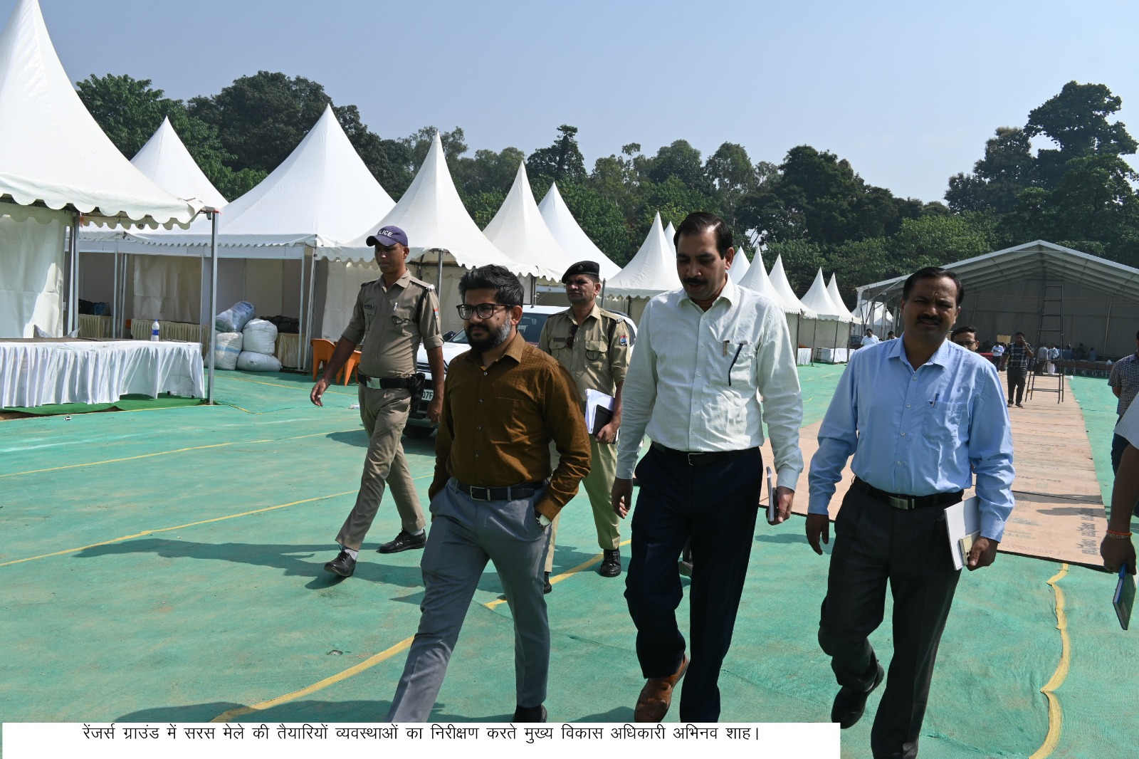 मुख्य विकास अधिकारी अभिनव शाह ने रेंजर्स ग्राउंड में कल दस दिवसीय सरस मेले की तैयारियों के संबंध में विभिन्न विभागों के उच्चाधिकारियों के साथ बैठक की। - Swastik Mail