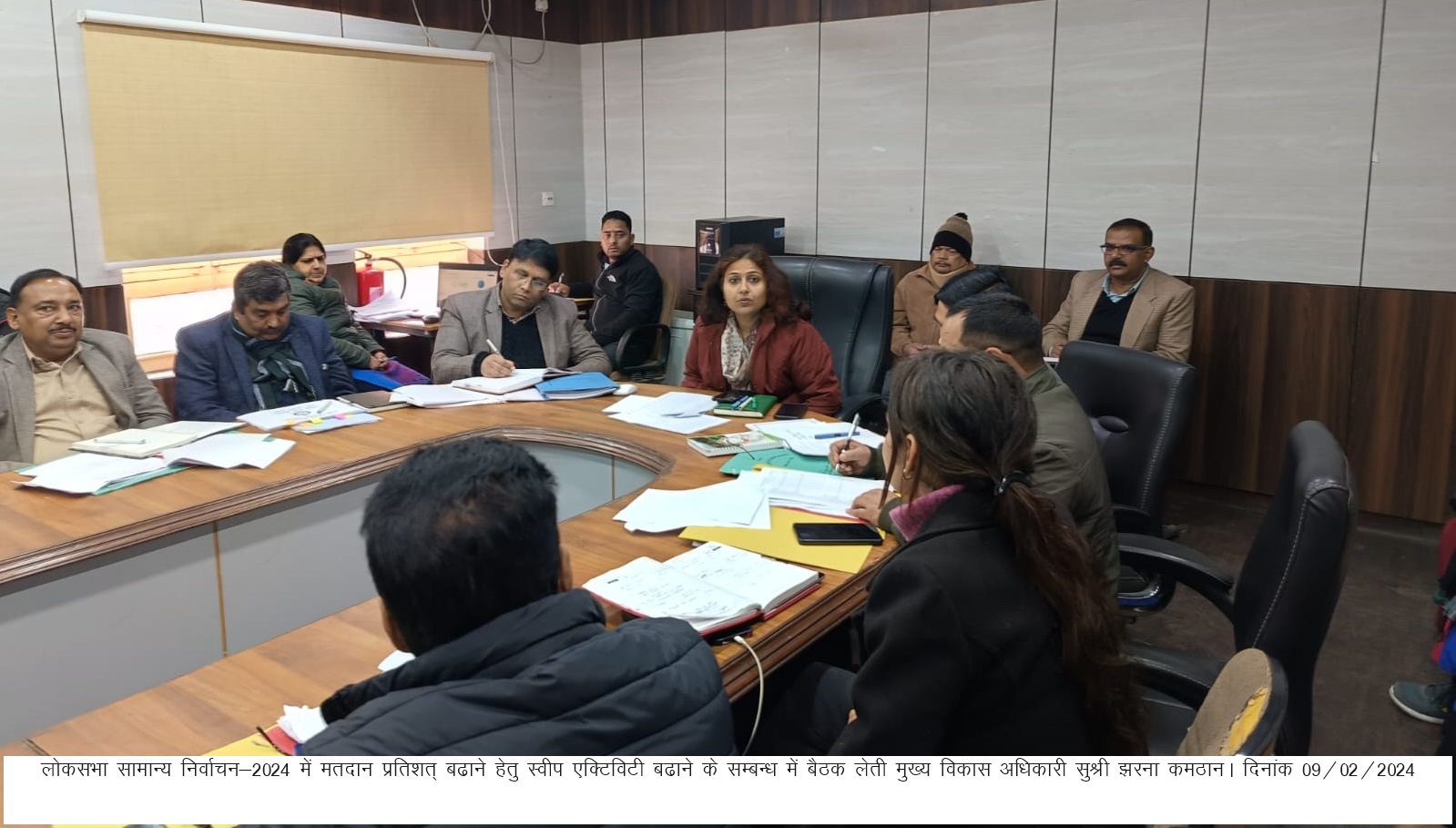 मुख्य विकास अधिकारी/उप जिला निर्वाचन अधिकारी सुश्री झरना कमठान ने समस्त विभागीय अधिकारियों को लोक सभा सामान्य निर्वाचन-2024 में मतप्रतिशत् बढाए जाने हेतु अपने-2 स्तर पर स्वीप एक्टिविटी बढाने के निर्देश दिए।
