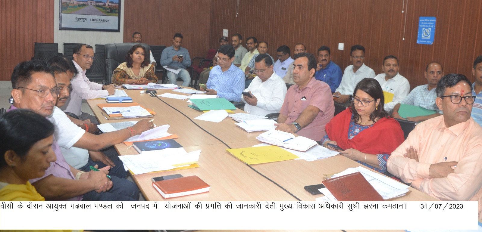 आयुक्त गढवाल मण्डल द्वारा आयुक्त कैंप कार्यालय से वीसी के माध्यम से जिला योजना, राज्य, केन्द्र एवं वाह्य सहायतित योजना, केन्द्र एवं राज्य सरकार द्वारा संचालित कार्यक्रमों एवं महत्वपूर्ण ध्वजवाहक योजनाओं तथा बीस सूत्रीय कार्यक्रम की प्रगति की समीक्षा की गई,जिसमें सभी मुख्य विकास अधिकारियों द्वारा अपने-अपने जनपद की योजनाओं की प्रगति की जानकारी दी गई।