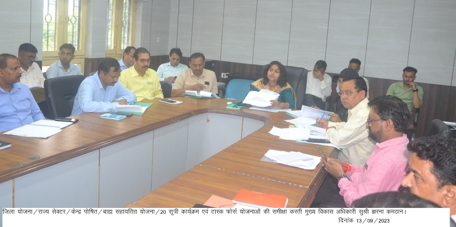 मुख्य विकास अधिकारी, सुश्री झरना कमठान ने जिला योजना / राज्य सेक्टर / केन्द्र पोषित / बाह्य सहायतित योजना / 20 सूत्री कार्यक्रम एवं टास्क फोर्स योजनाओं से संबंधित कार्यों की समीक्षा बैठक आहूत की गई।