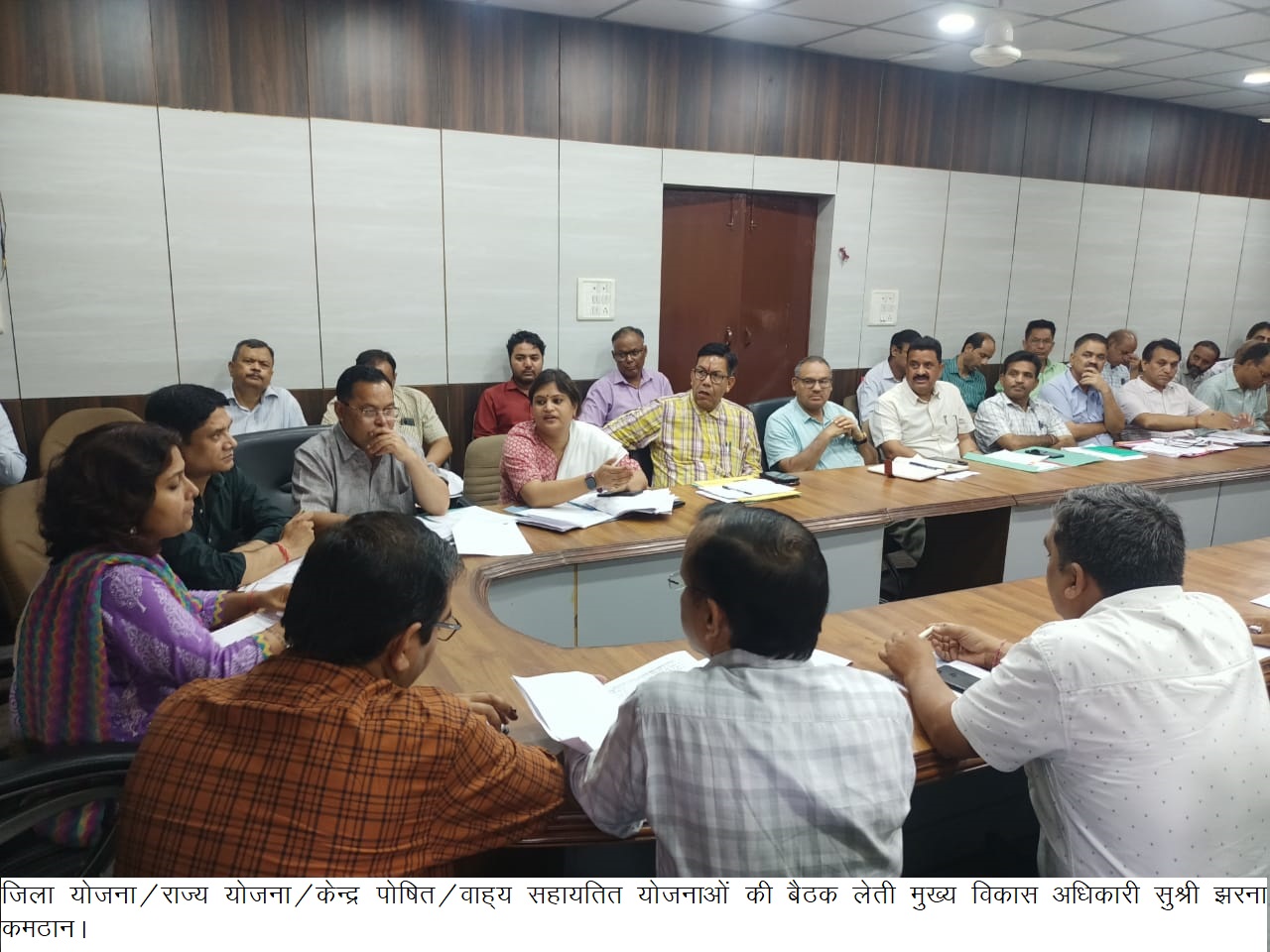 मुख्य विकास अधिकारी सुश्री झरना कमठान की अध्यक्षता में विकासभवन सभागार में जिला योजना/राज्य योजना/केन्द्र पोषित/वाह्य सहायतित योजनाओं तथा 30 सूत्रीय कार्यक्रम की समीक्षा बैठक आयोजित की गई।