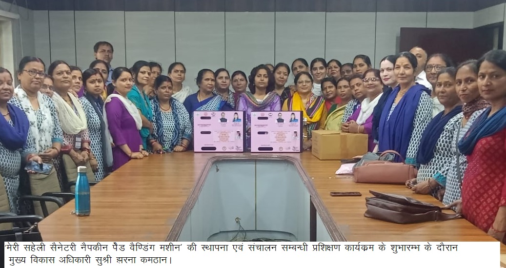 मुख्य विकास अधिकारी सुश्री झरना कमठान ने ‘मेरी सहेली सैनेटरी नैपकीन पेैड वैण्डिंग मशीन‘ की स्थापना एवं संचालन सम्बन्धी प्रशिक्षण का शुभारम्भ किया।