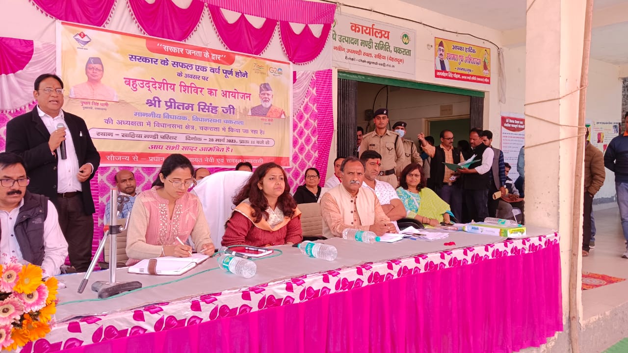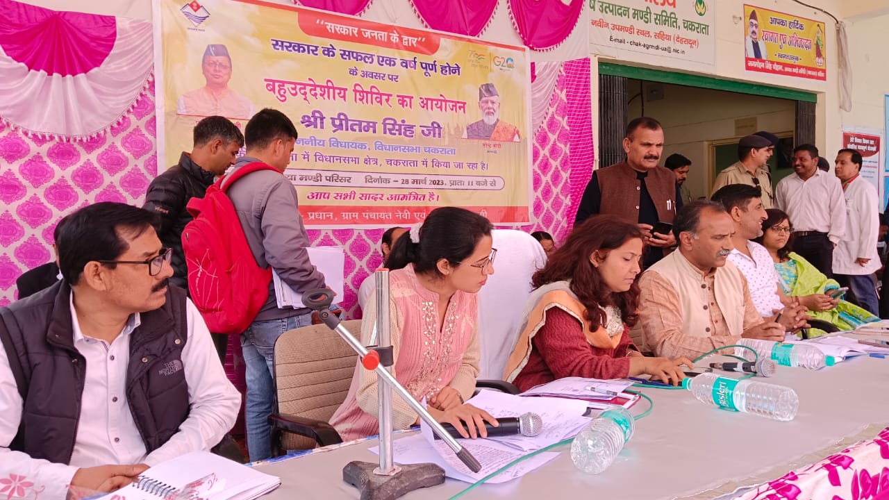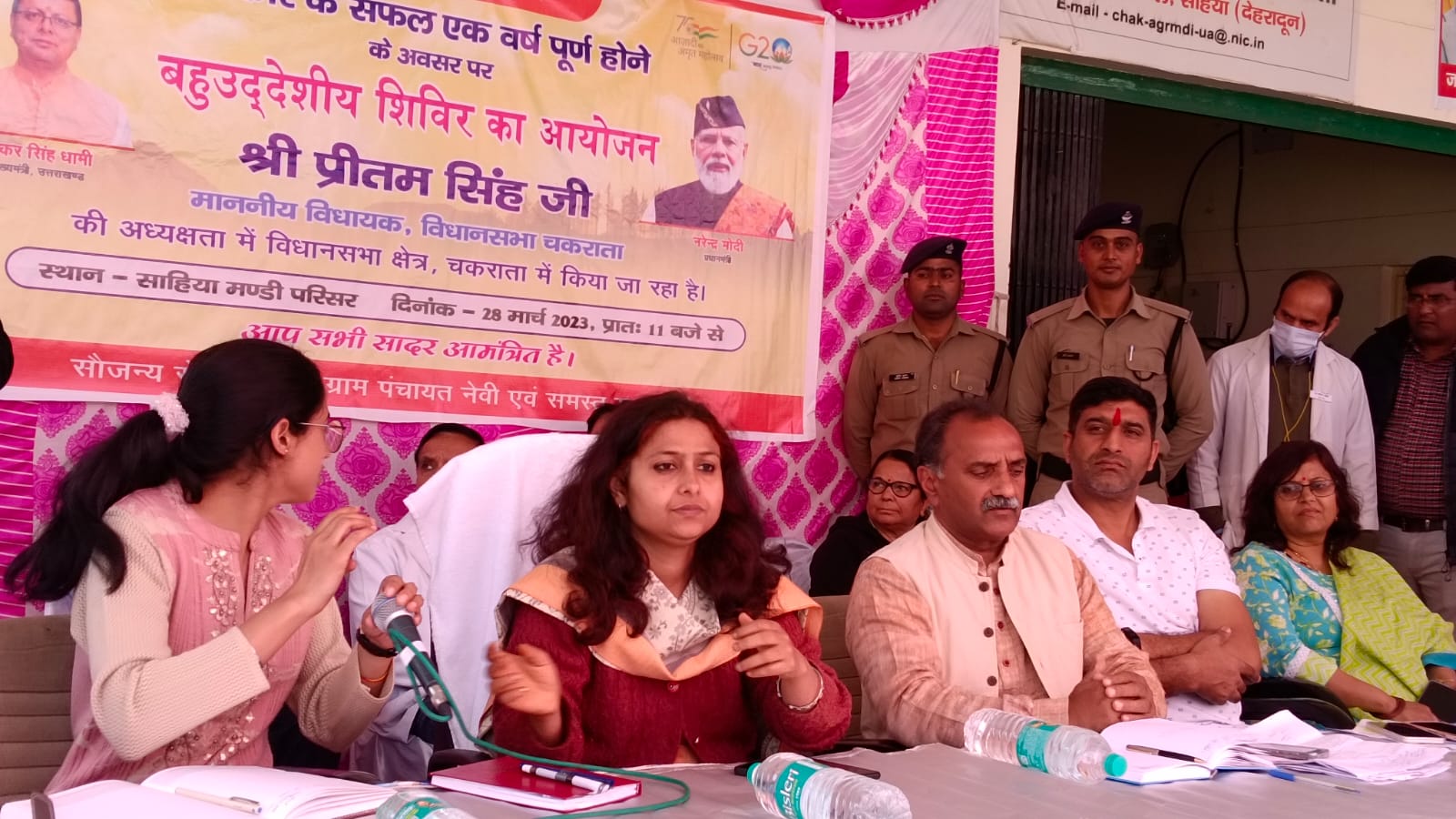 मुख्य विकास अधिकारी देहरादून सुश्री झरना कमठान ने कहा कि सरकार के एक वर्ष पूर्ण होने पर सरकार जनता के द्वार बहुउददेशीय शिविर का आयोजन किया गया जिससे सभी अधिकारी जनता के पास पहुंचे और जनता की समस्या सुने जिससे समस्या का समाधान हो सके। शिविर में अधिकतर शिकायते पानी,सड़क,बिजली,किसान सम्मान निधि,सिंचाई की सामने आई। शिविर की अध्यक्षता ब्लॉक प्रमुख कालसी मठोर सिंह ने कि।