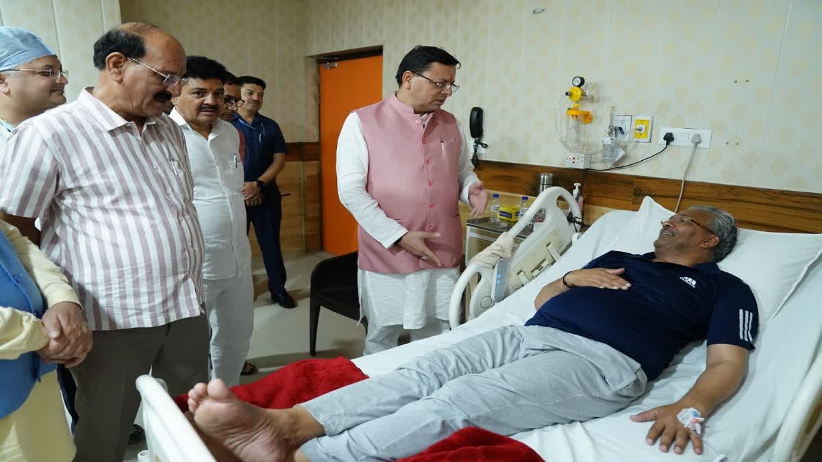 मुख्यमंत्री पुष्कर धामी पूर्व सीएम त्रिवेंद्र रावत से मिलने आरोग्यधाम अस्पताल पहुंचे।