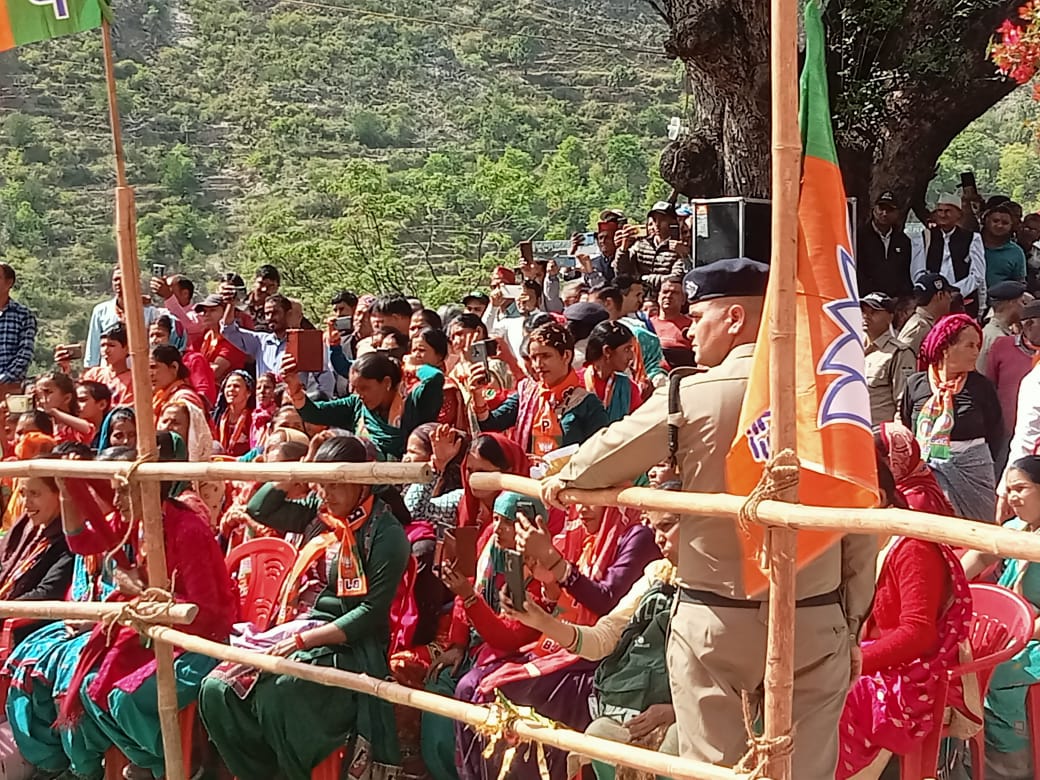 लोकसभा चुनाव प्रचार अभियान के तहत आज प्रतापनगर विधानसभा के लंबगांव में प्रदेश के मुख्यमंत्री पुष्कर सिंह धामी ने एक जनसभा को सम्बोधित करते हुए कहा कि प्रधानमंत्री नरेंद्र मोदी को तीसरी बार देश का प्रधानमंत्री चुनने के लिए आप सभी भाई बहन 19 अप्रैल को भाजपा के पक्ष में वोट करें,मुख्यमंत्री ने कहा कि प्रधानमंत्री नरेंद्र मोदी ने पिछले 10 सालों में ऐतिहासिक काम किए प्रधानमंत्री के नेतृत्व में पूरे विश्व में भारत की धाक बढ़ी है,देश की सीमा पर जवानों का हौसला बुलंद है तो,देश के किसान खुश है,गरीब,वंचित,शोषित,महिला सशक्तिकरण,युवा,बुजुर्ग सभी के लिए प्रधानमंत्री ने एक अभिभावक की तरह कार्य किया है,देश में पिछले 10 सालों में 15 नए एम्स,74 हवाई अड्डे,हजारों किमी सड़क निर्माण हुआ है,उत्तराखंड में ऑल वेदर रोड़,नरेंद्रनगर सहित राज्य के तीन जगहों पर जी 20 सम्मेलन आयोजित करवाने का काम प्रधानमंत्री ने किया है।