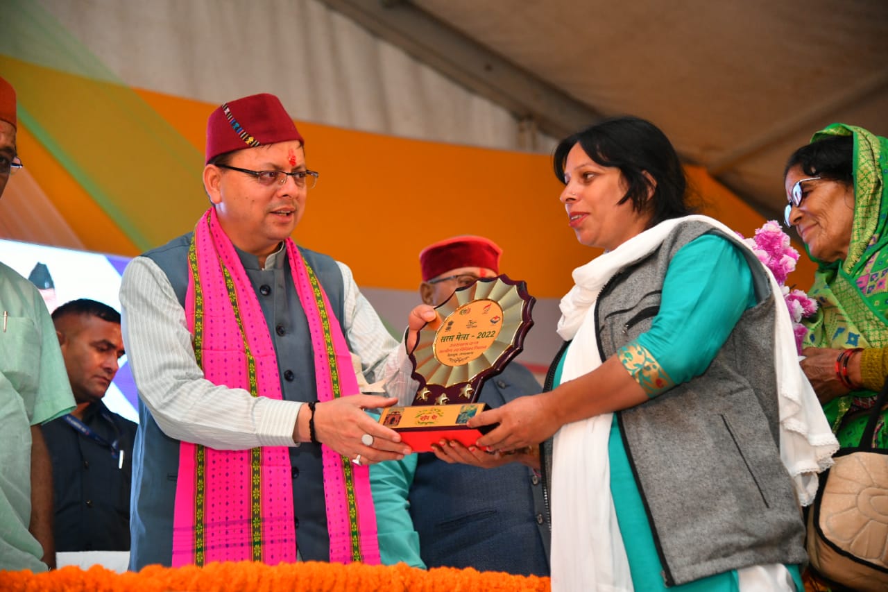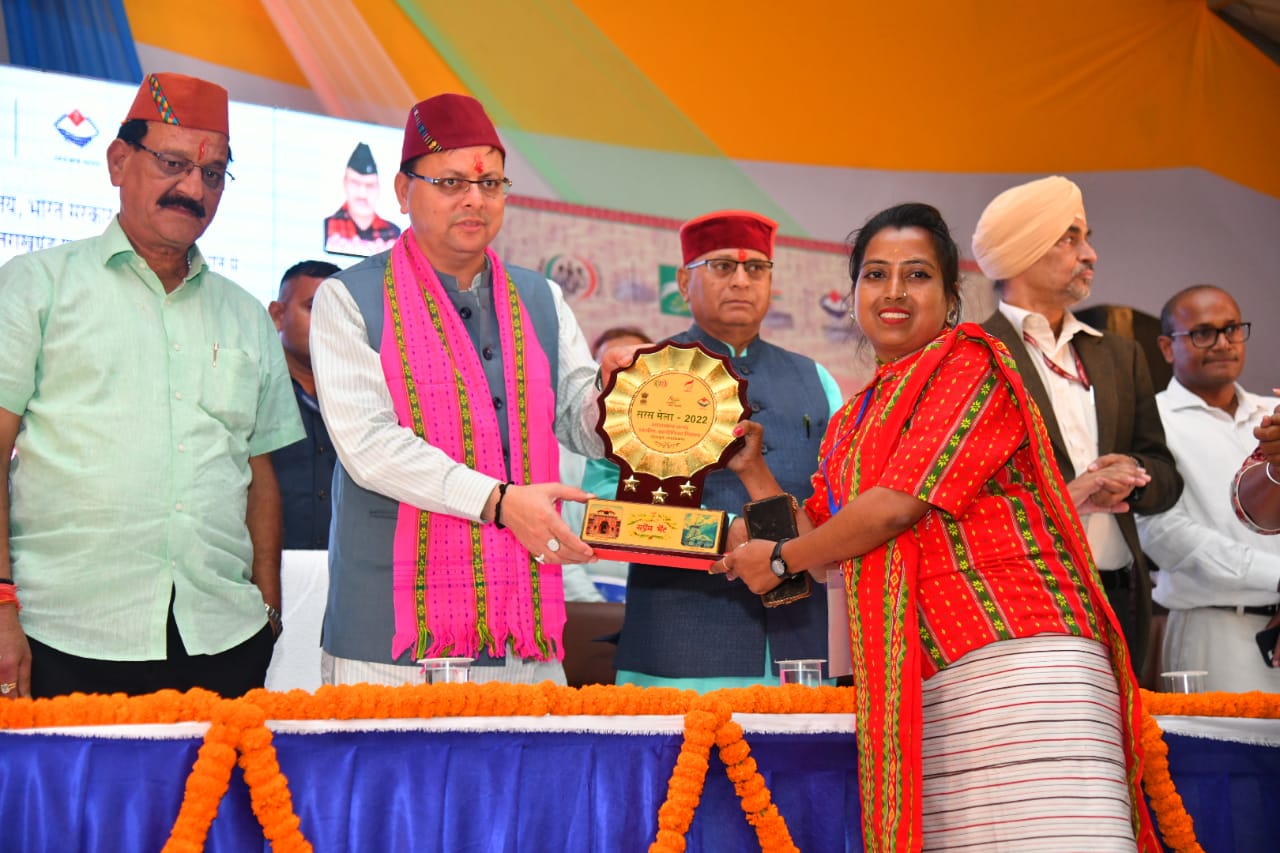 माननीय मुख्यमंत्री उत्तराखंड सरकार ने महिला समूहों को सम्मानित किया, जिनमें मीनाक्षी सहायता समूह चकराता देहरादून, आरोग्य सहायता समूह तारीखेत अल्मोड़ा, जय मां दुर्गा स्वयं सहायता समूह, बागेश्वर मां दुर्गा समूह पोखरी चमोली, पूर्णागिरि स्वयं सहायता समूह लोहाघाट चंपावत, सीताराम स्वयं सहायता समूह खानपुर हरिद्वार, कालका स्वयं सहायता समूह हल्द्वानी नैनीताल, आयूष स्वयं सहायता समूह पौडी, अरसुम स्वयं सहायता समूह मुंसयारी पिथौरागढ़, मद्महेश्वर उखीमठ रुद्रप्रयाग, विकास स्वयं सहायता समूह टिहरी गढ़वाल, सत्यम शिवम स्वयं सहायता समूह सितारगंज उधमसिंहनगर, काशी विश्वनाथ समूह भटवारी उत्तरकाशी, लक्ष्मी स्वयं सहायता समूह गुजरात, ठंडी जासन सहायता समूह पश्चिम बंगाल, मधु मिशन सहायता समूह पांडिचेरी, कोहिनूर संसार का समूह त्रिपुरा, सप्लाई संसद का समूह पंजाब, जय मां संस्था समूह, उत्तर प्रदेश उपासना संस्था समूह केरल, उज्जवला स्वयं सहायता समूह महाराष्ट्र, सन सुखी संसार का समूह मेघालय, श्रीराम स्वयं सहायता समूह हरियाणा, सायापात्री सहायता समूह सिक्किम, वैष्णवी सहायता समूह राजस्थान, दवीयनखासा समूह आंध्र प्रदेश, नहमत स्वयं सहायता समूह बिहार, शंकर सहायता समूह छत्तीसगढ़, कृष्णा स्वयं सहायता समूह कर्नाटक को सम्मानित किया गया।