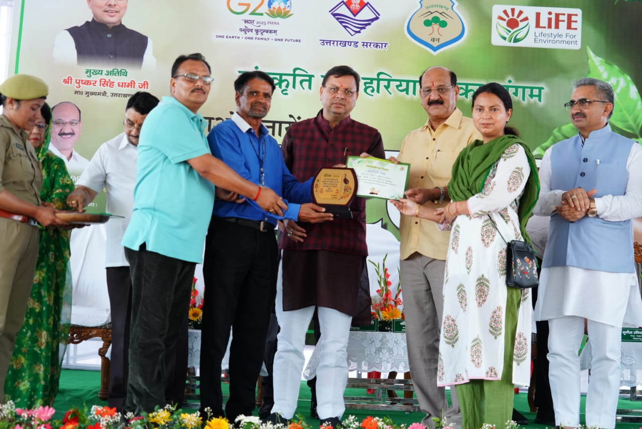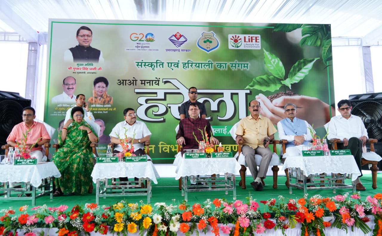 मुख्यमंत्री श्री पुष्कर सिंह धामी ने आज हरेला पर्व के अवसर पर अन्तरराष्ट्रीय क्रिकेट स्टेडियम, महाराणा प्रताप स्पोर्ट्स कॉलेज, रायपुर में ‘जल संरक्षण एवं जल धाराओं के पुनर्जीवन’ थीम पर आयोजित कार्यक्रम में प्रतिभाग किया। इस अवसर पर मुख्यमंत्री ने पौधे लगाए। मुख्यमंत्री ने पर्यावरण संरक्षण की दिशा में सराहनीय प्रयास करने वाले स्कूलों एवं वन पंचायतों को सम्मानित भी किया।