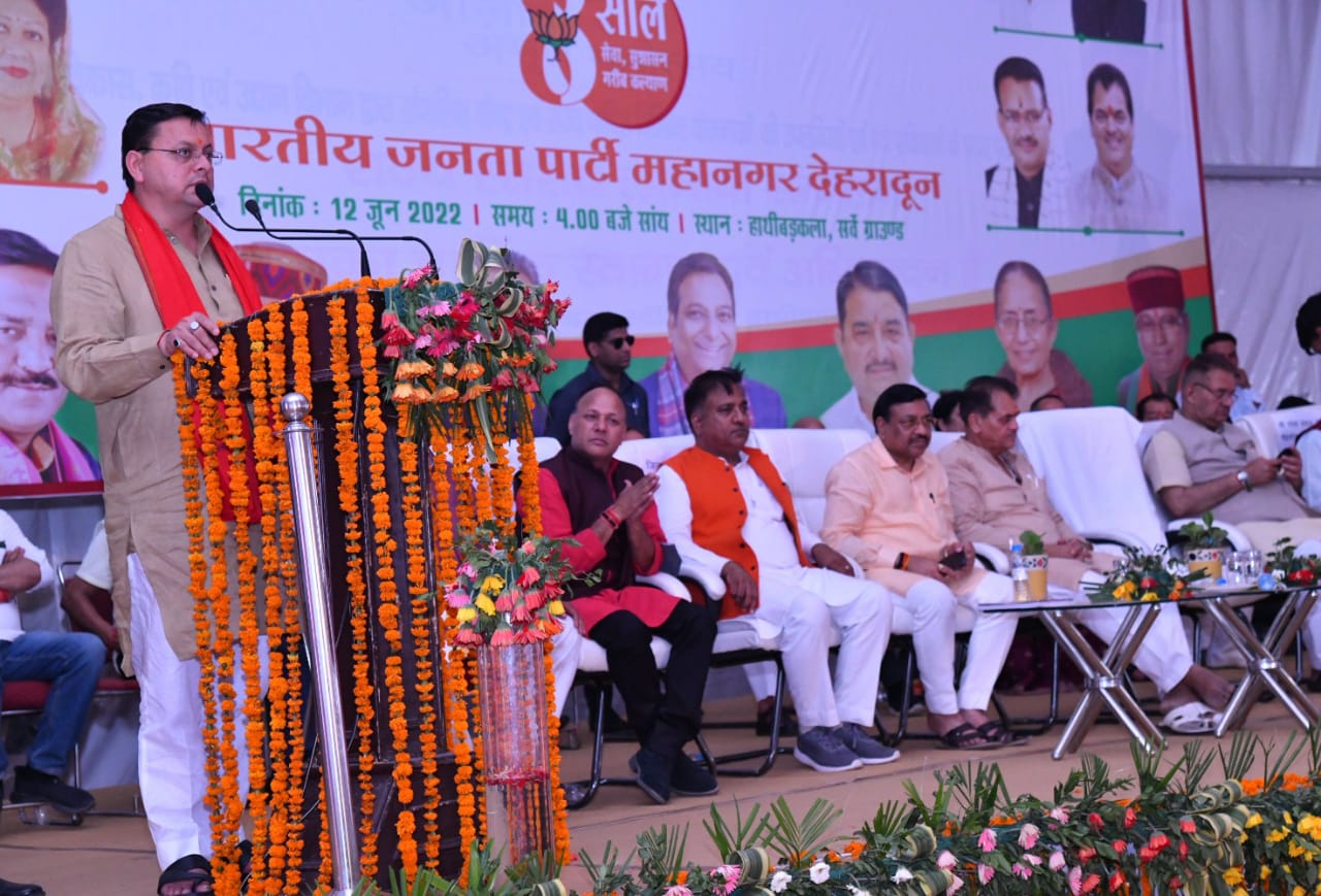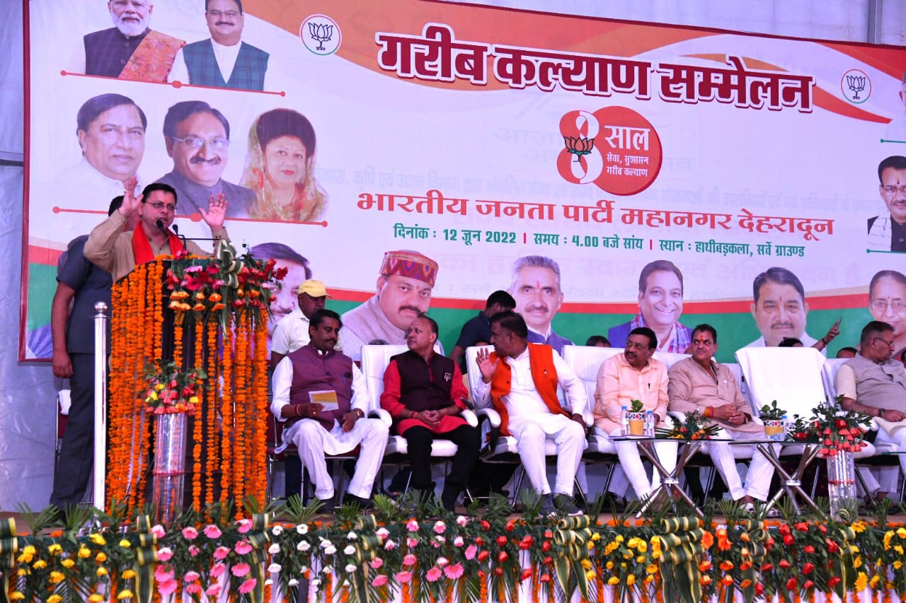 मुख्यमंत्री श्री पुष्कर सिंह धामी ने आज प्रधानमंत्री श्री नरेन्द्र मोदी के नेतृत्व में 08 वर्ष पूर्ण होने के अवसर पर आयोजित गरीब कल्याण सम्मेलन को सम्बोधित किया।