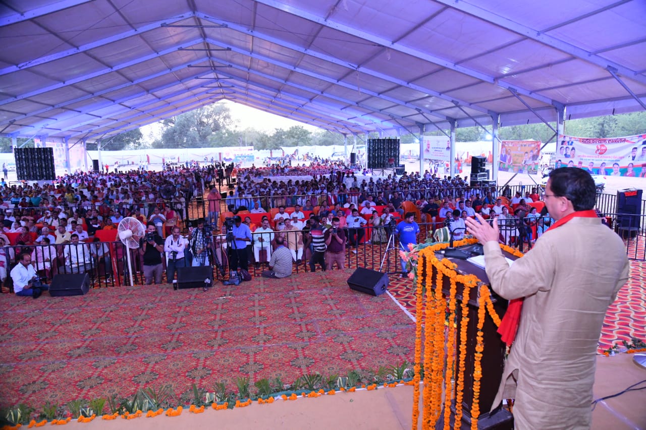 मुख्यमंत्री श्री पुष्कर सिंह धामी ने आज सर्वे स्टेडियम, हाथीबड़कला में प्रधानमंत्री श्री नरेन्द्र मोदी के नेतृत्व में 08 वर्ष पूर्ण होने के अवसर पर आयोजित गरीब कल्याण सम्मेलन को सम्बोधित किया। इस कार्यक्रम में आजादी के अमृत महोत्सव के उपलक्ष्य में ग्राम्य विकास, उद्यान, कृषि विभाग से सम्बन्धित योजनाओं एवं कार्यक्रमों के 30 स्टॉल लगाये जाने के साथ ही बड़ी संख्या में लाभार्थी एवं स्थानीय जनता उपस्थित रही।