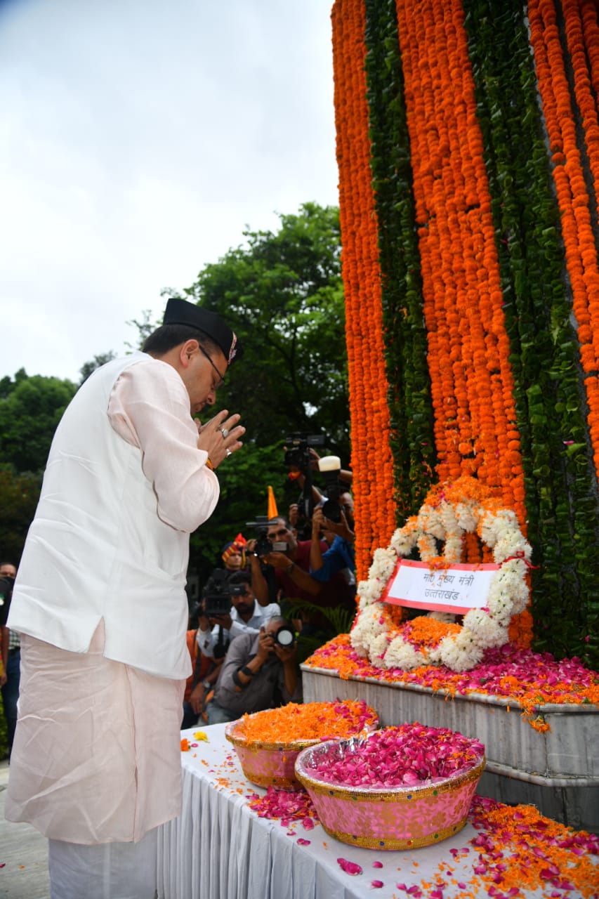 मुख्यमंत्री श्री पुष्कर सिंह धामी ने गांधी पार्क में शहीद स्मारक पर कारगिल शहीदों को श्रद्धांजलि अर्पित की।