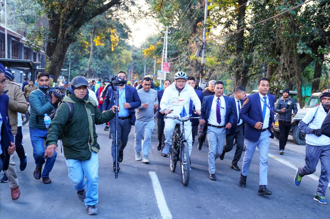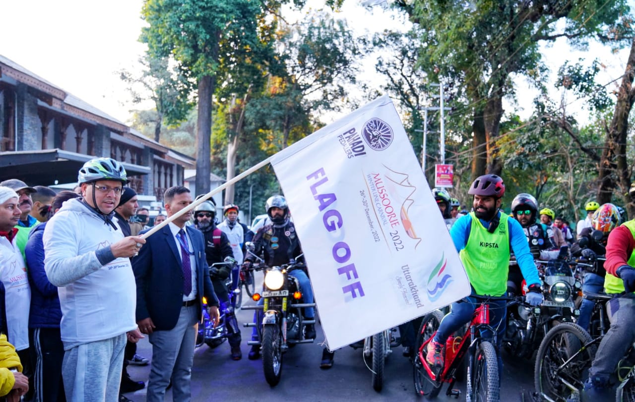 मुख्यमंत्री पुष्कर सिंह धामी ने मसूरी विंटर कार्निवाल में साइकिल रैली का शुभारंभ किया।