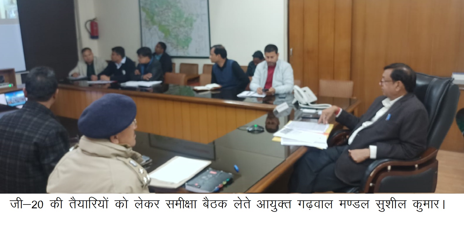 आयुक्त गढवाल मण्डल सुशील कुमार ने अपने शिविर कार्यालय से माह मई-जून 2023 में प्रस्तावित जी-20 कार्यक्रम को लेकर अतिक्रमण विरोधी अभियान, स्थानीय व्यवस्था समिति की बैठक ली।