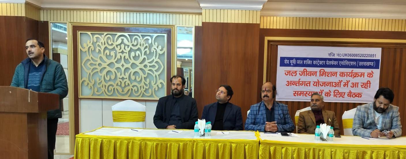 देवभूमि जल शक्ति कांट्रेक्टर वेलफेयर एसोसिएशन द्वारा हरिद्वार बाइपास स्थित एक होटल में प्रेस वार्ता का आयोजन किया गया । इस प्रेस वार्ता को देवभूमि जल शक्ति कांट्रेक्टर वेलफेयर एसोसिएशन के अध्यक्ष अमित अग्रवाल एवं अन्य सदस्यों ने संबोधित किया। अध्यक्ष अमित अग्रवाल ने मीडिया को संबोधित करते हुए कहा हमारे माननीय प्रधानमंत्री जी का लक्ष्य हर घर जल, हर घर तक नल पहुंचना था जिसको हमारे प्रदेश सरकार में माननीय मुख्यमंत्री जी द्वारा जल जीवन मिशन कार्यक्रम के अंतर्गत कार्यों को करवाने के लिए अथक प्रयास किए गए जिसमें हमारे ठेकेदारों ने काफी तेजी से कार्य किया। परंतु वन भूमि का परमिशन न मिलाना, जलस्यों के लिए भूमि समय से ना मिल पाने के कारण कार्यों में देरी आई। वेरिएशन न बनने के कारण फिजिकल प्रोग्रेस नहीं मिल पा रही है एवं केंद्र सरकार से पैसा ना आने के कारण फाइनेंशियल प्रोग्रेस भी नहीं मिल पा रही है।